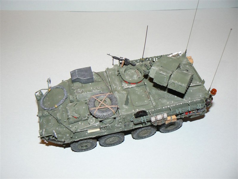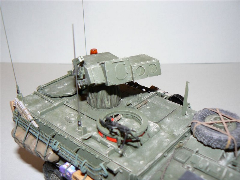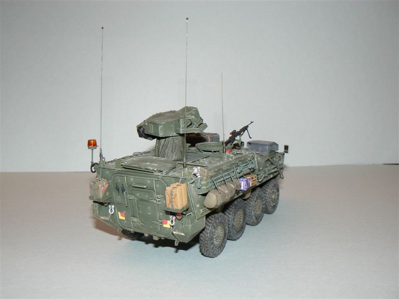 Zum Bau des M 1134 ATGM kann ich nur sagen, das Mir der Bausatz sehr viel Spaß gemacht hat. Passgenauigkeit und Detaillierung sind sehr gut. Aber auch dieser Bausatz ist nicht ganz Fehlerfrei. Die MG Halterung ist Falsch und sollte selbst gebaut werden. Rundum Warnleuchte und das Signalhorn habe ich aus dem Stryker Upgrade Satz von AFV entnommen. Die Warnleuchte wird ab den M 1132 vorhanden sein. Auch wird die Qualität der Bausätze von mal zu Mal besser.