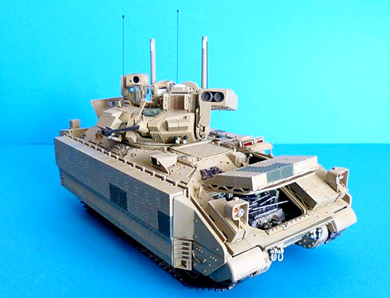 Fazit: Mit den Mengmodellen wird die Tür des Panzermodellbaus, noch ein ganzes Stück weiter geöffnet. Sind die übrigen Bausätze schon gut, wurde mit dem Bradley das Meisterstück abgeliefert. Man fragt sich: Kann der Formenbau noch besser werden? Passgenauigkeit und Detaillierung sind erste Sahne. Aufgrund der Teilevielzahl sind diese Modelle dem versierteren Modellbauern angeraten.