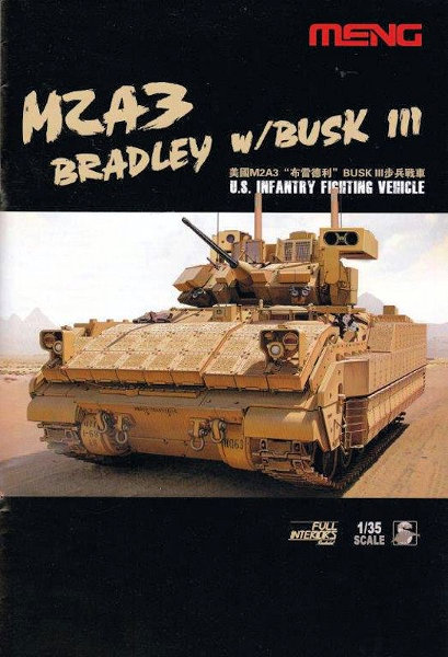 Bausatz: Vor einiger Zeit erschien ein neuer Modellbauhersteller auf den Markt. Die Rede ist von der Firma Meng aus China, deren Modelle durch eine Passgenauigkeit und Detailtreue bestachen, die sich glatt mit dem Vorreiter des Plastikmodellbaus, dem japanischen Hersteller Tamiya, messen lassen kann. Bei der Vielzahl der Bauteile und dem sehr guten Preis-Leistungs-Verhältnis, wird Tamiya im Militärmodellbau sogar übertroffen. Daher war meine Freude groß, als Meng einen M2 A3 Bradley mit Zusatzpanzerung BUSK III zu Anfang des Jahres 2014 nicht nur ankündigte sondern auch realisierte.
