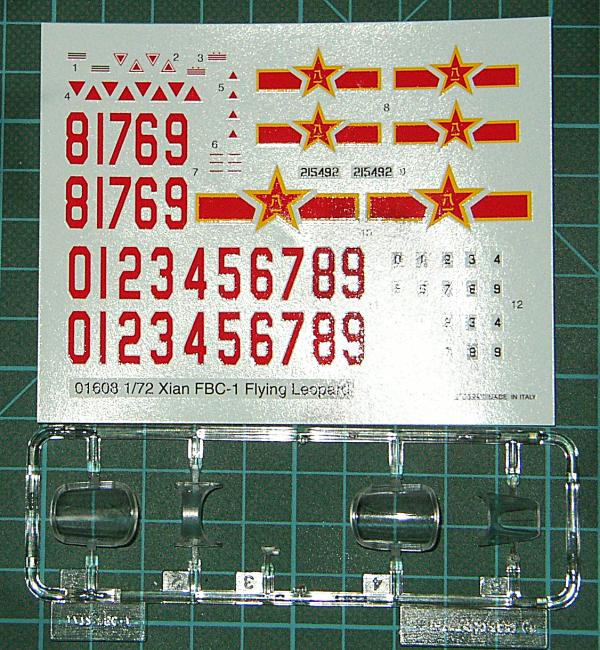 Bausatz: 81 hellgraue Spritzguss- und fünf Klarsichtteile ermöglichen den Bau der FBC-1. Die Bauanleitung ist sehr übersichtlich und die Decals ermöglichen eine Vielzahl von verschiedenen Maschinen. Das Cockpit ist sehr sparsam detailliert und da Vorbildinformationen auch kaum vorhanden sind, gibt es hier ein Problem. Wenigstens sollte man die rudimentären Schleudersitze mit Gurten versehen.