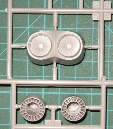 Ein wenig Detaillierung kann der Bugfahrwerksschacht auch gebrauchen. In Bauabschnitt vier taucht ein Problem auf. Wer die Spay - Triebwerke der britischen Phantom kennt, der kann das Manko ausmachen. Einzige mir bekannte Möglichkeit wäre, die Triebwerksauslässe der F-4 K/M - Bausätze von Fujimi zu verwenden (Vergleichsfoto). Die Ruder und Klappen können alle angewinkelt montiert werden. Spätestens in Bauabschnitt 16 ist das Buggewicht einzubauen. Die Farbangaben zur Außenbemalung sind wieder sehr gut.