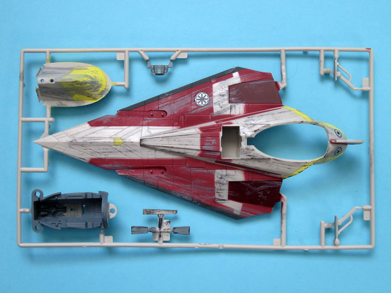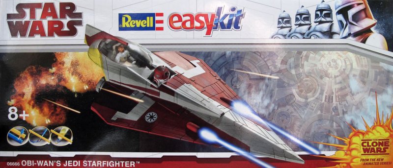 Der Starfighter von Meister Obi-Wan ist das vorerst letzte Modell in der Klonkrieg-Serie von Revell. Bis auf die Figur und Bedruckung ist es baugleich zu dem von Anakin.