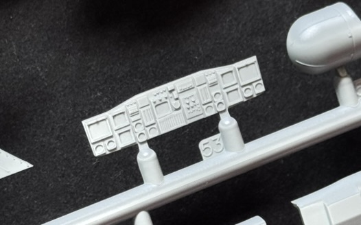 Das Plastik macht einen sehr hochwertigen Eindruck, und die Angussstellen sind klug gewählt. Leichte Fischhaut konnte ich lediglich an einer der Türen entdecken, ansonsten war nichts Auffälliges zu sehen. Auch ein kleiner Gussfehler ist mir aufgefallen, dieser wird jedoch später durch andere Bauteile vollständig verdeckt und hat somit keinerlei Einfluss auf das fertige Modell. Die Details sind wirklich gelungen, und es macht einfach Spaß, sich die einzelnen Teile genauer anzusehen.