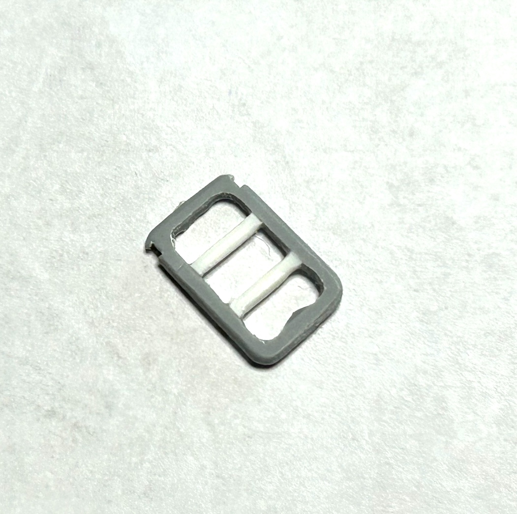 Los ging es dann mit dem Gepäckträger. Nach dem Entfernen unerwünschter Details wurde der Rahmen im Innenbereich noch etwas dünner gestaltet und nach dem Einsetzen der beiden Streben aus Plastikstreifen sauber verschliffen und an den Ecken abgerundet.