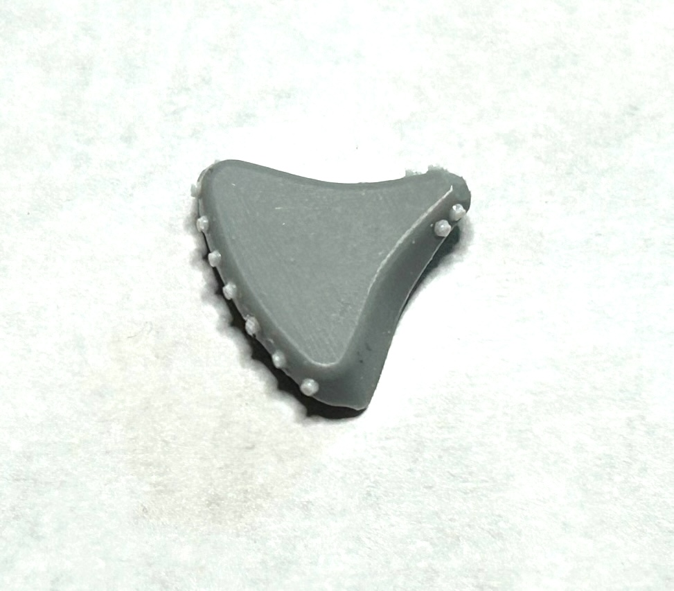 Als sehr einfach gestaltete sich das Ergänzen der fehlenden Nieten am Sattel für den Fahrer. Die Nieten habe ich aus 0.25mm starkem Plastikmaterial ausgestanzt und aufgeklebt.