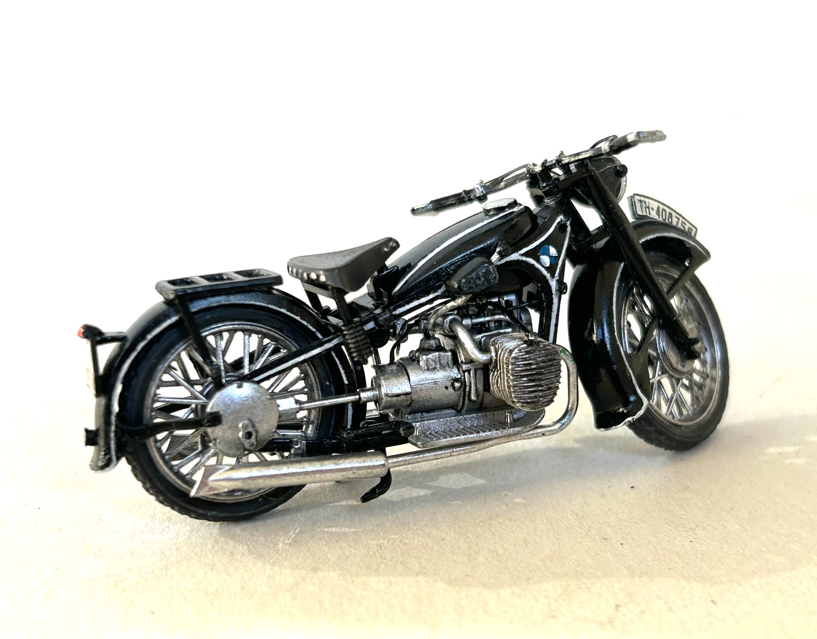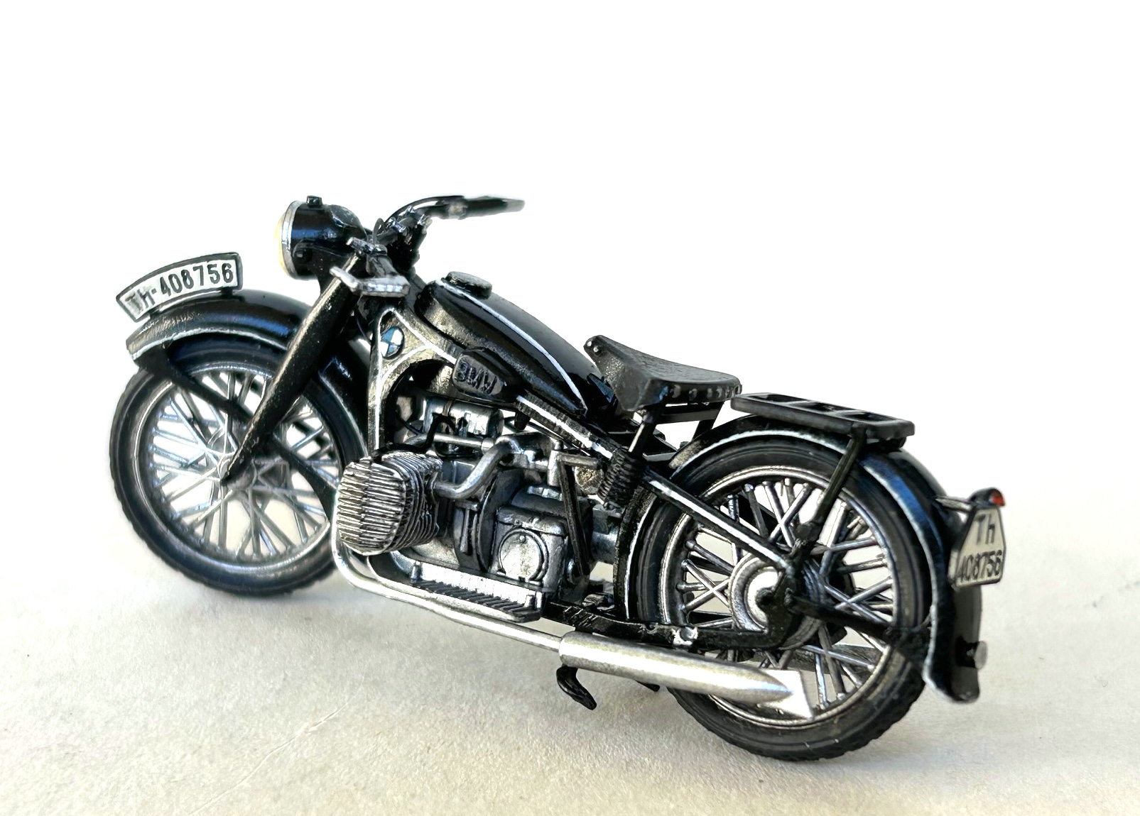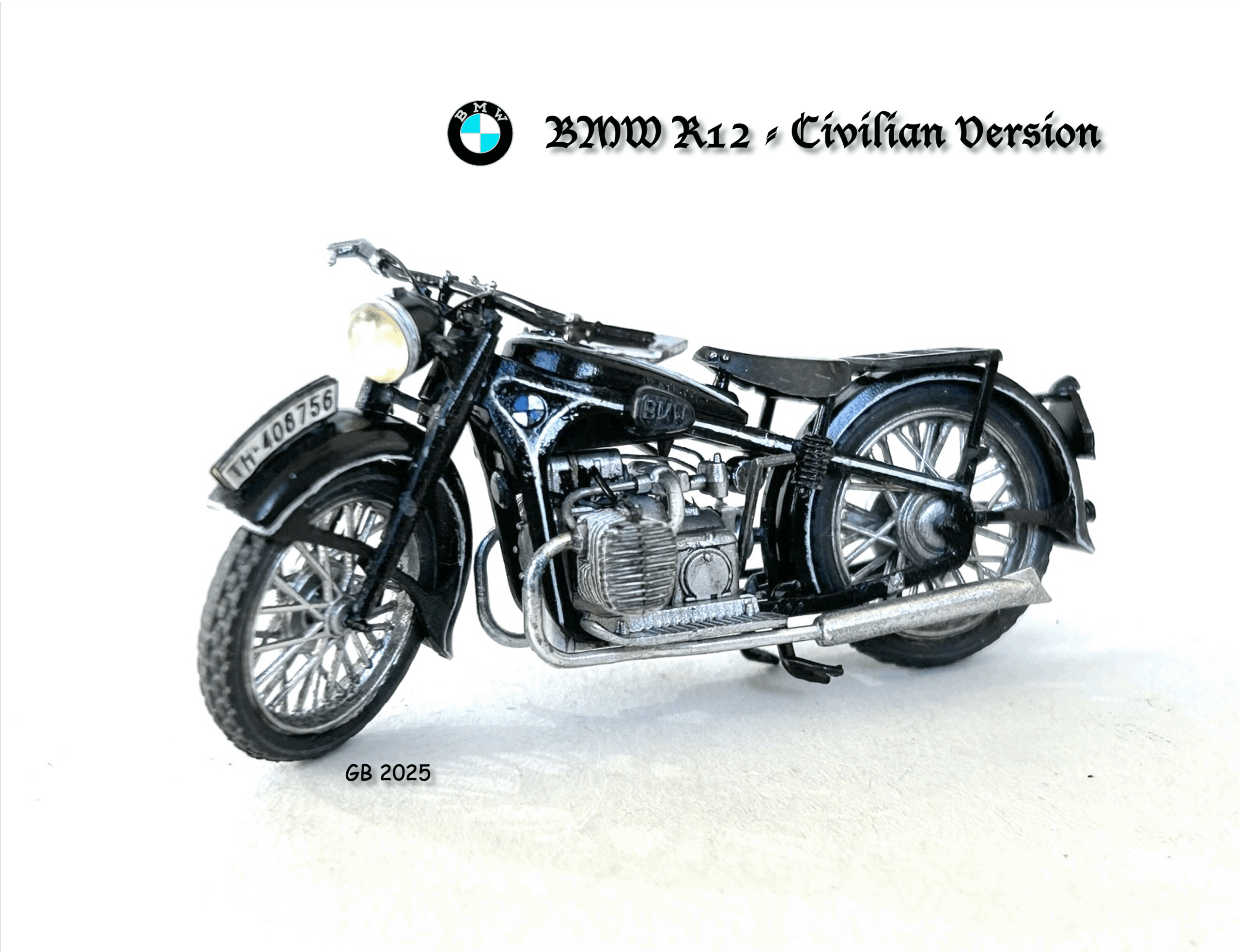 Das Original: Die BMW R-12 war ein Motorrad der Bayerischen Motorenwerke, das 1935 präsentiert wurde und als meistgebautes Vorkriegsmotorrad von BMW galt. Wegweisend an der R 12 und der gleichzeitig erschienenen BMW R-17, war die erste hydraulisch gedämpfte Teleskopgabel im Motorradbau.