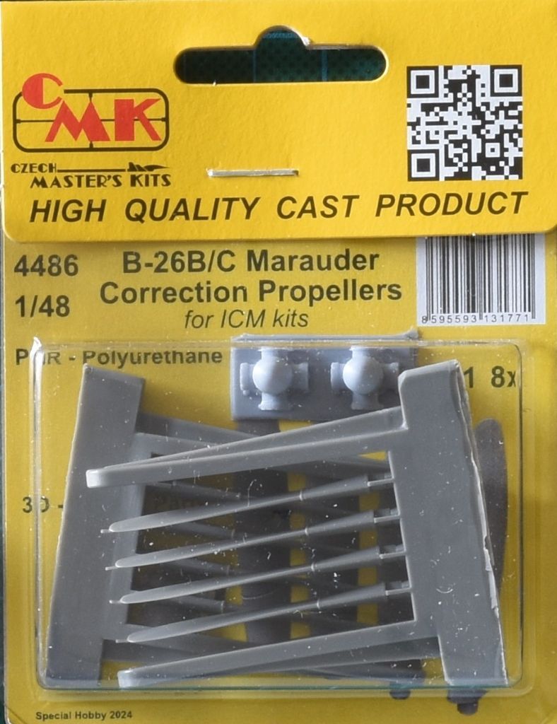 Die hervorragenden B-26 Bausätze von ICM ziehen eine wahre Waren-Schleppe von Zurüst- und Verbesserungssätzen verschiedener Hersteller hinter sich her. Dazu zählen auch die hier vorliegenden Propeller und Spinner von CMK.