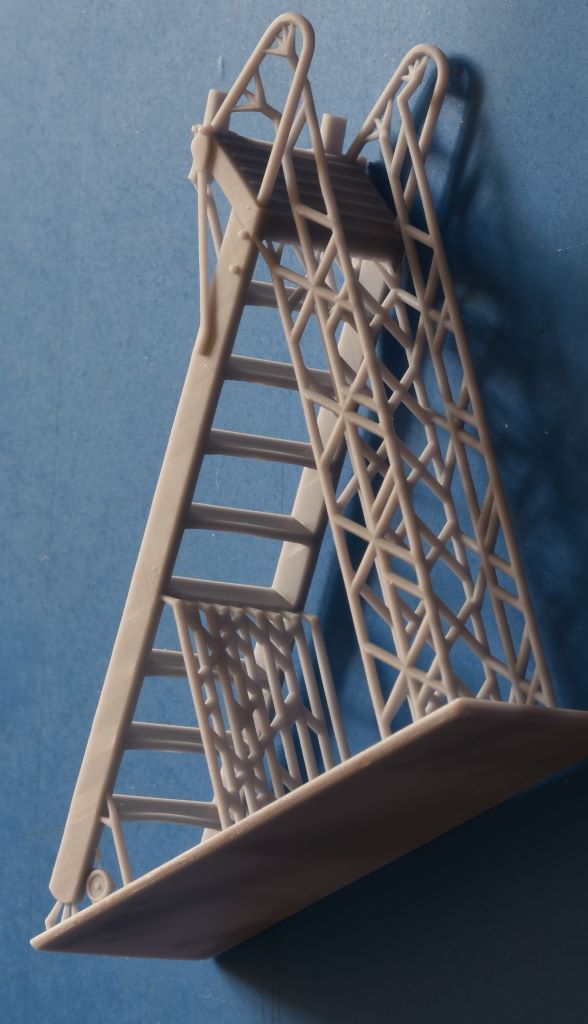 Die überaus bruchempfindlichen Teile liegen gegen Beschädigung relativ gut gesichert in einem Blister. Einstiegsleitern, egal ob mit oder ohne Figuren, können die Darstellung eines Flugzeugmodells verbessern. Eine Bemalanleitung liegt nicht vor. Hier muss das Internet zu Rate gezogen werden.