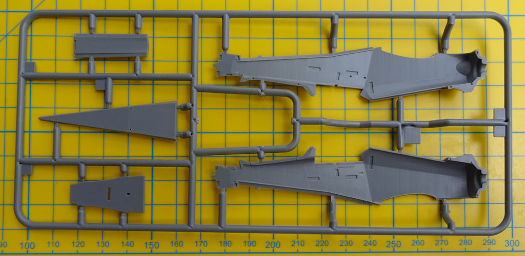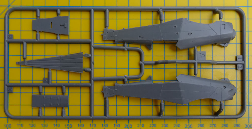 Die Abspritzung der Bauteile ist tadellos. Auswerfermarken oder Grat ist kaum zu finden. Auf den Tragflächen findet man extrem feine Details. Die Kleinteile sind extrem winzig. Allerdings werden noch kleine Fotoätzteile als Ruderbeschläge oder für die Detaillierung des Rumpfes benötigt.