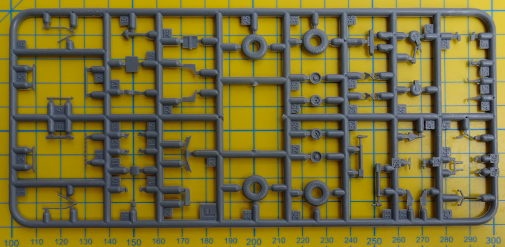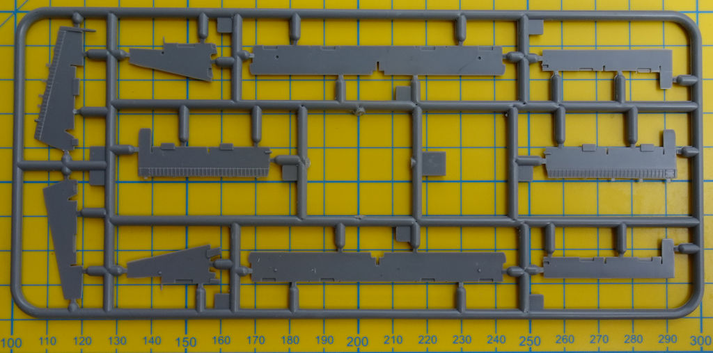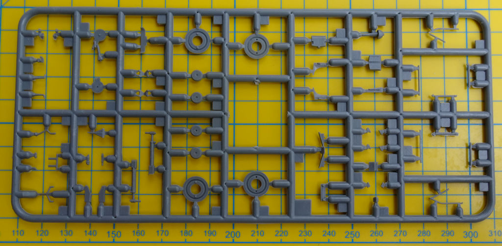 In dem attraktiven stabilen Stülpkarton befinden sich gut verpackt sieben graue Spritzlinge mit 106 Teilen, ein klarer Spritzling mit 15 Teilen, ein Fotoätzteilbogen, graue Masken, ein Decalbogen sowie die mehrfarbige Bau- sowie Bemalungsanleitung. Ein paar Teile sind für andere Versionen und wandern in die Restekiste.