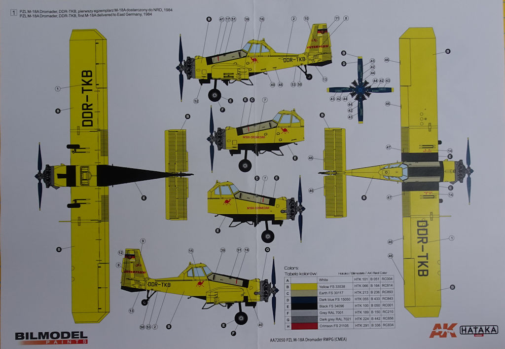 Vorbild: Die PZL-Mielec M18 Dromader (Dromedar) ist ein einmotoriges Agrarflugzeug, das in Polen hergestellt wurde. Es wurde/wird in der Landwirtschaft für die Düngung und Pflanzenschutz eingesetzt. Es wird ebenfalls noch als Feuerlöschflugzeug, u.a. auch in Deutschland, eingesetzt.