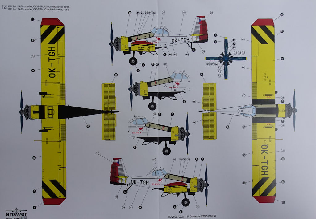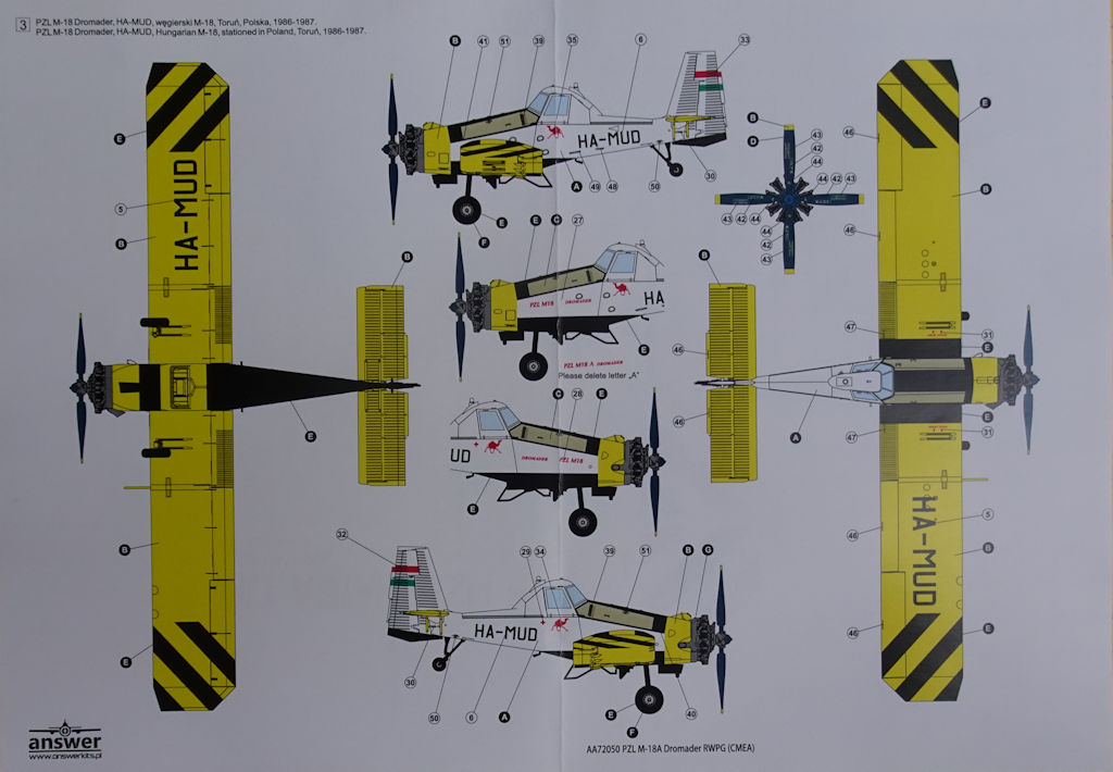 Bausatz: Answer aus Polen hat interessante Bausätze mit polnischem Bezug im Angebot. Seit einiger Zeit war die PZL M18 in 1/72 angekündigt und überraschte gleicht mit einer zweisitzigen M18A u.a. in den Farben der Interflug.