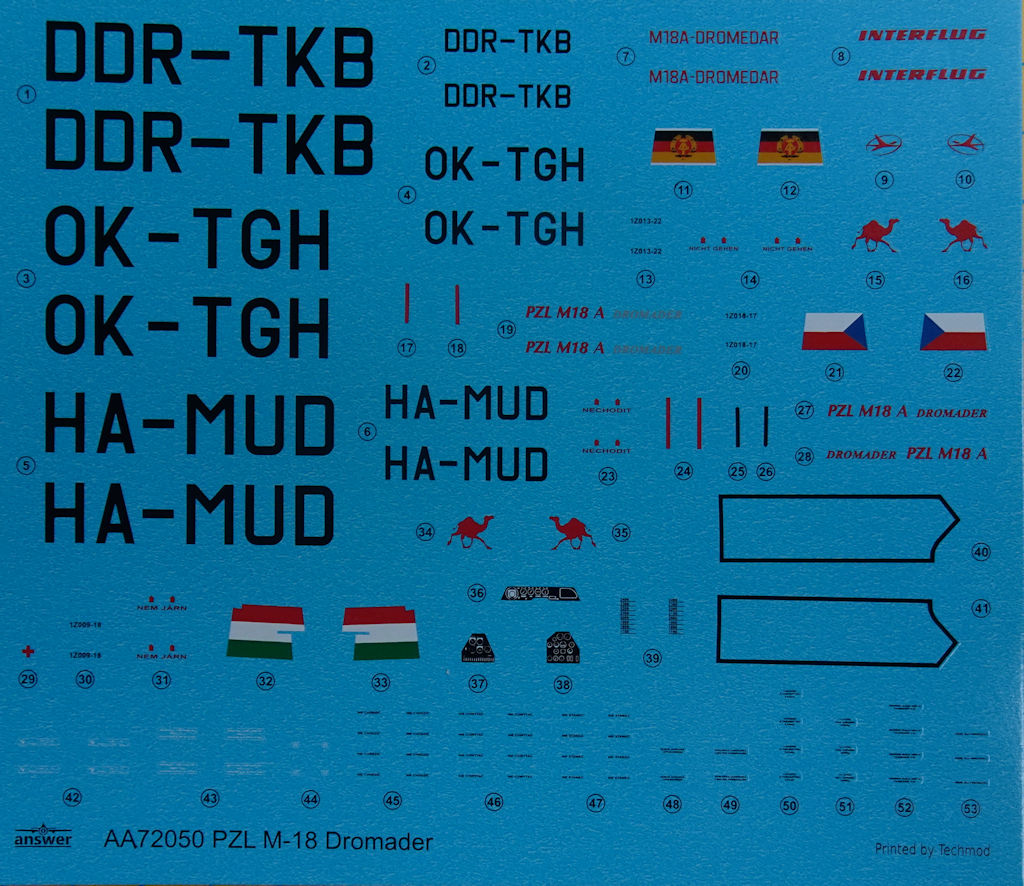 Bausatz: Answer aus Polen hat interessante Bausätze mit polnischem Bezug im Angebot. Seit einiger Zeit war die PZL M18 in 1/72 angekündigt und überraschte gleicht mit einer zweisitzigen M18A u.a. in den Farben der Interflug.