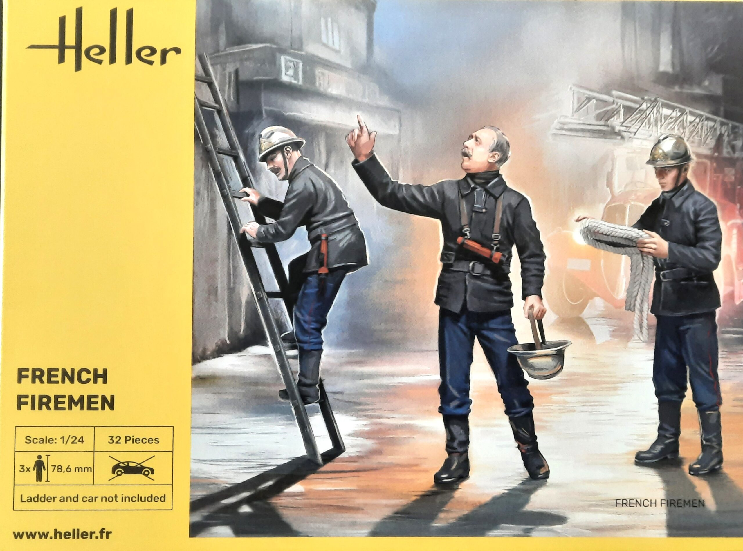 Fazit: Ein interessanter Bausatz der zum Bau eines Dioramas verleitet um dieses Figurentrio in Szene zu setzen. Die zeitlich passenden Feuerwehrfahrzeuge dazu findet man ebenfalls im Heller-Programm.