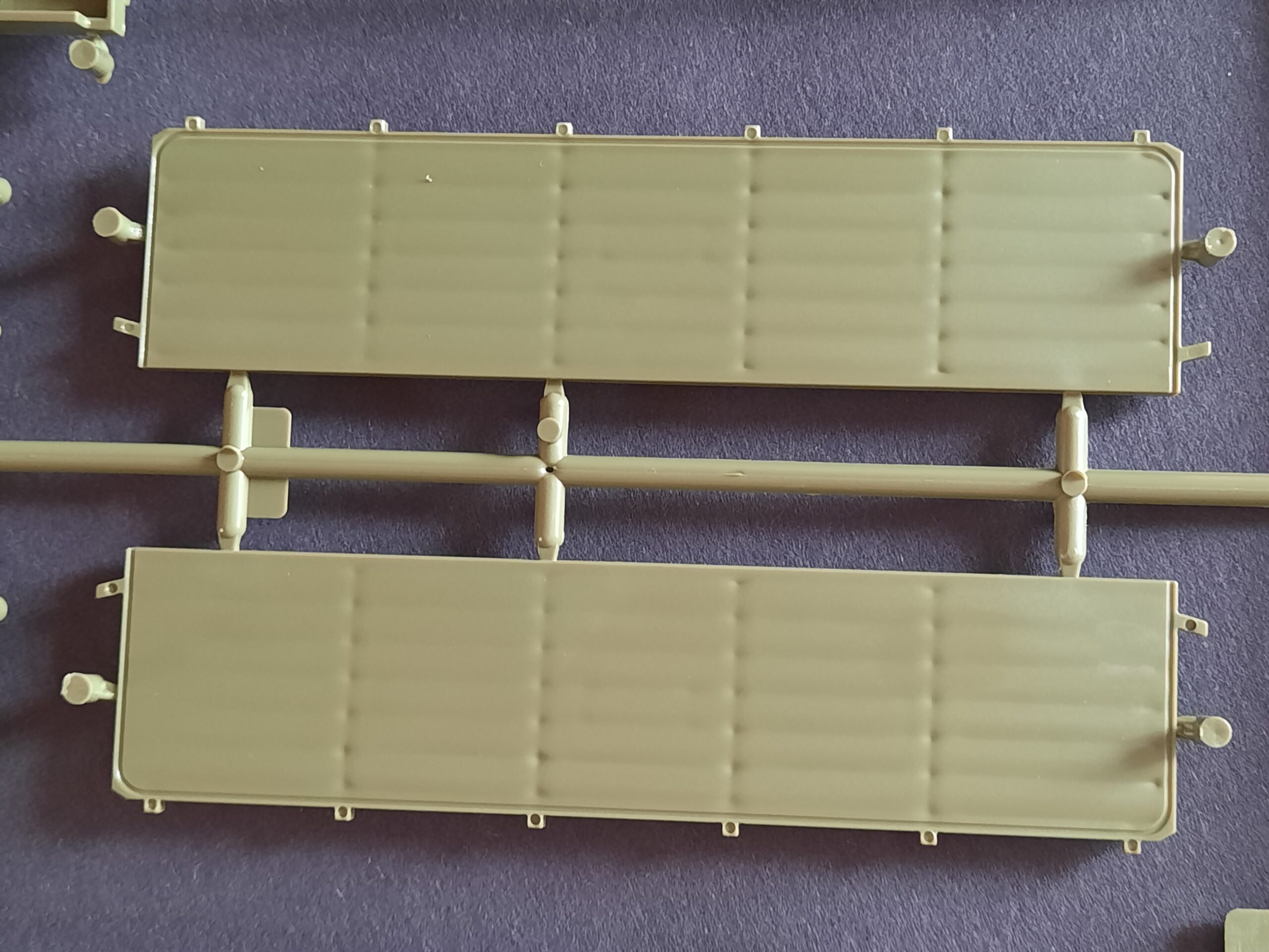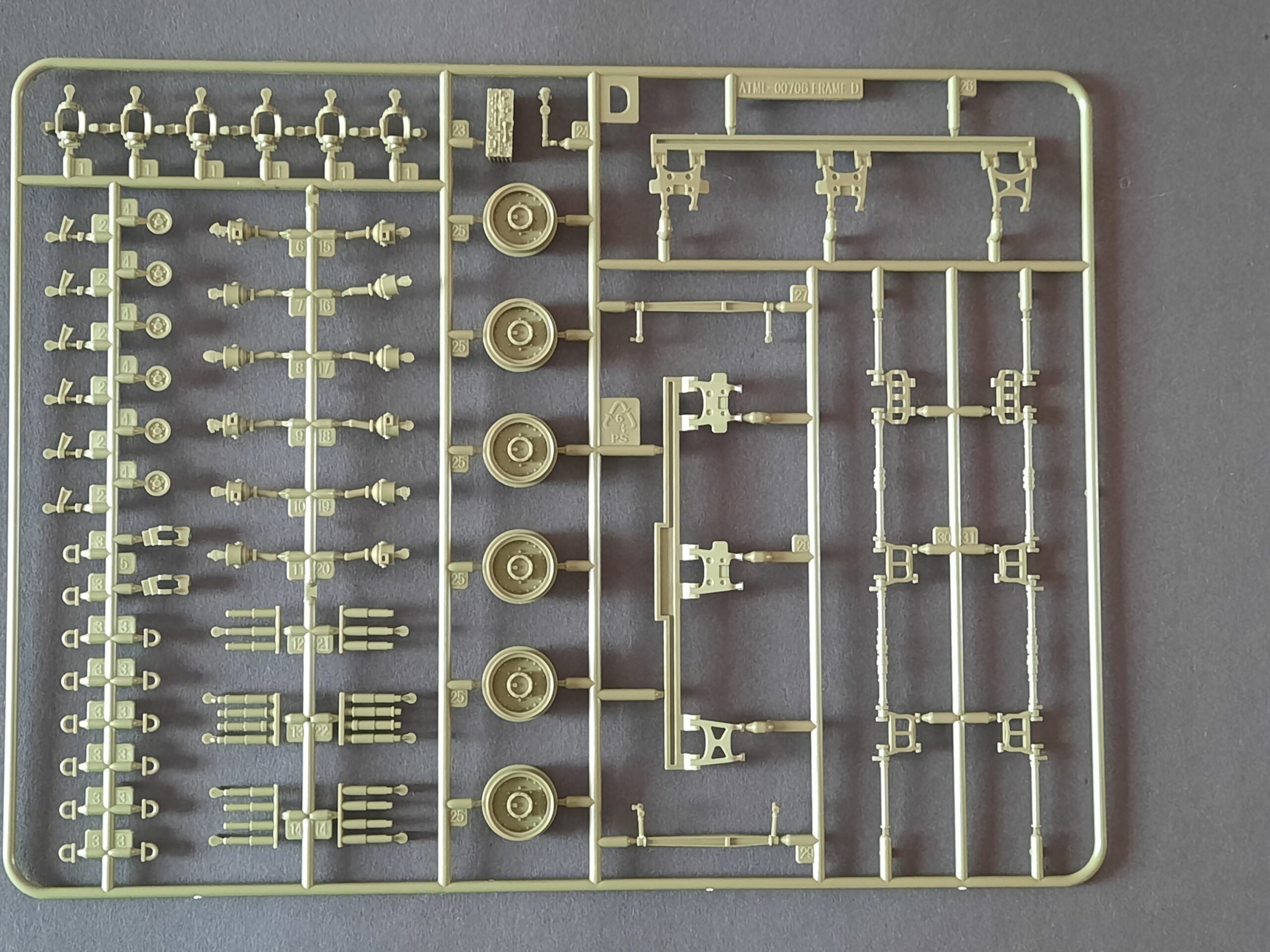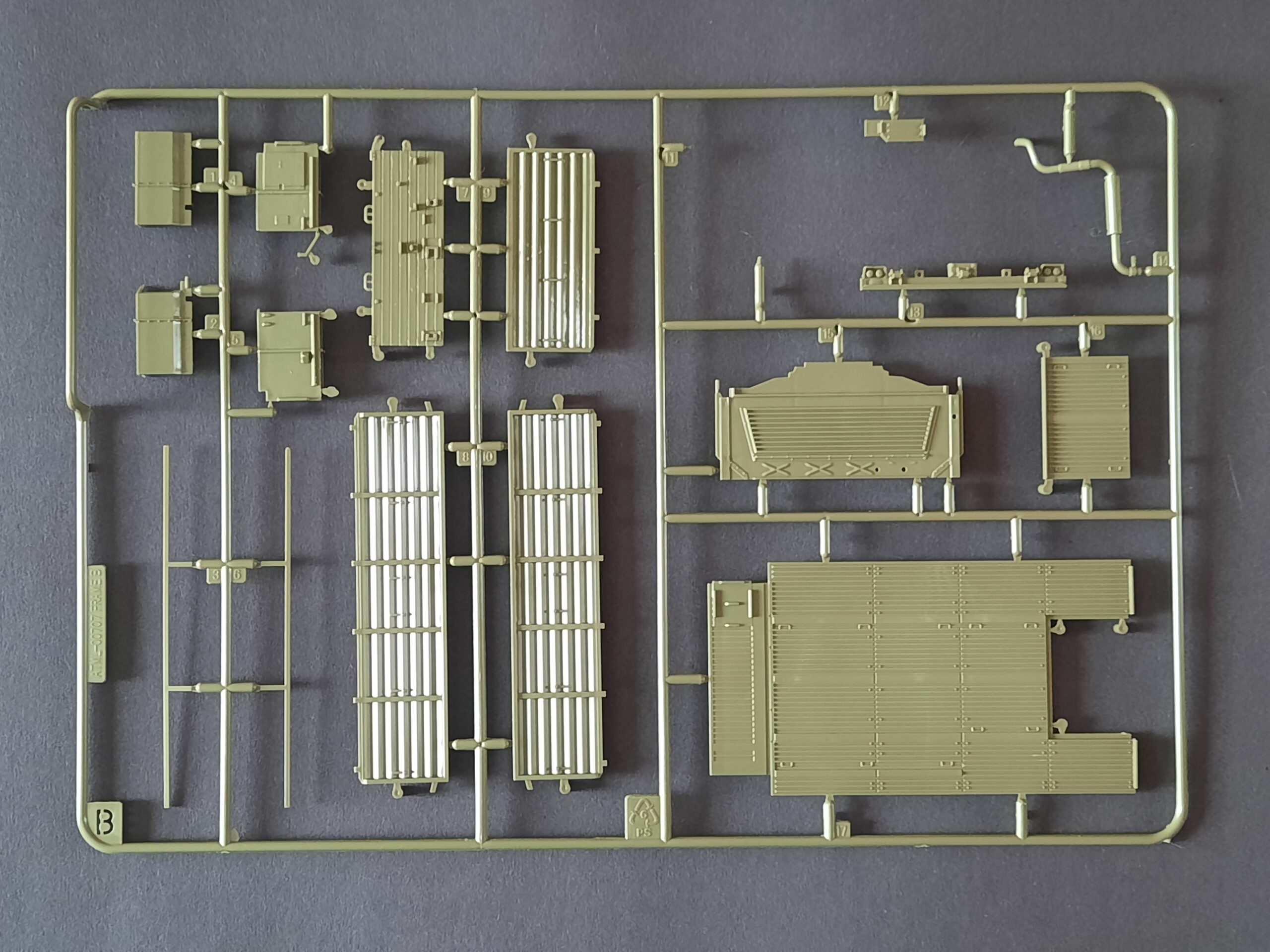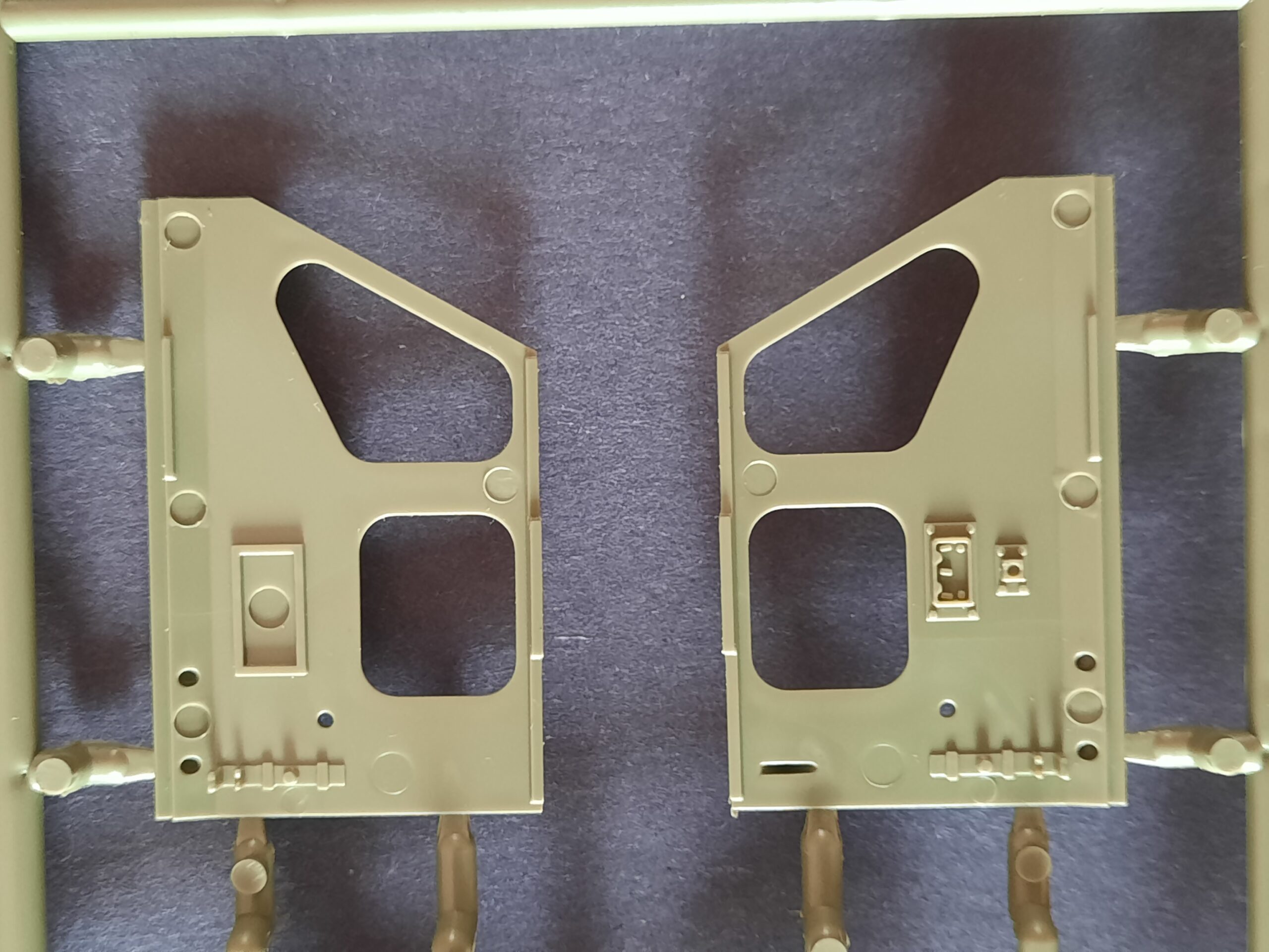 Der Stalwart-Bausatz besteht aus ca. 211 Teilen. Diese verteilen sich auf 7 Spritzrahmen. Dazu gibt es noch einen überschaubaren Decalbogen und natürlich die Bauanleitung. Die Plastikteile sind sauber gespritzt. Großartige Nacharbeiten sind keine zu erwarten. Allerdings sind Auswurfmarkierungen reichlich vorhanden und befinden sich in auf den ersten Blick in nicht oder kaum sichtbaren Bereichen. Wer es perfekt mag, wird an Schleif- und Glättungsarbeiten noch eine Menge Zeit investieren müssen. Ärgerlicher sind noch die Sinkstellen im Material vieler Bauteile. Ein Effekt, der bei heutigen Modellbausätzen gar nicht mehr auftreten sollte.