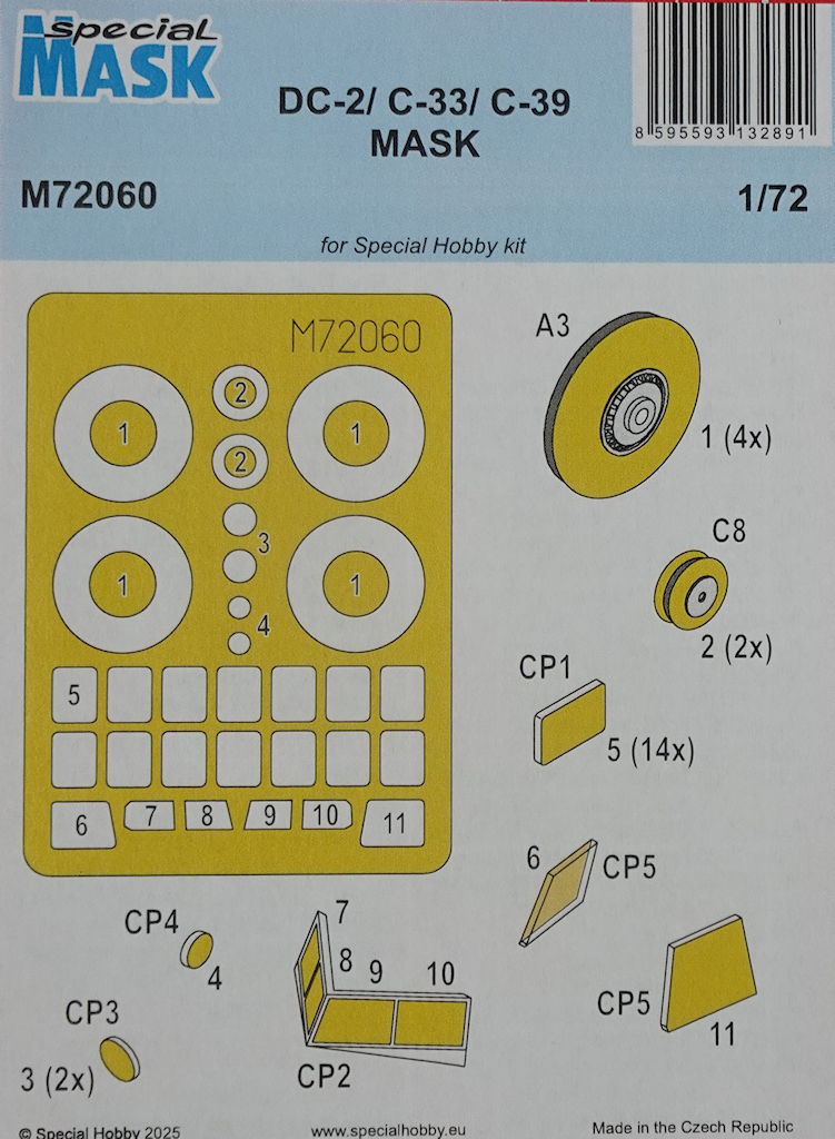 Für die hauseigene Douglas DC-2 sowie deren Ableitungen C-33/C-39 hat Special Mask ein Maskenset im Angebot.