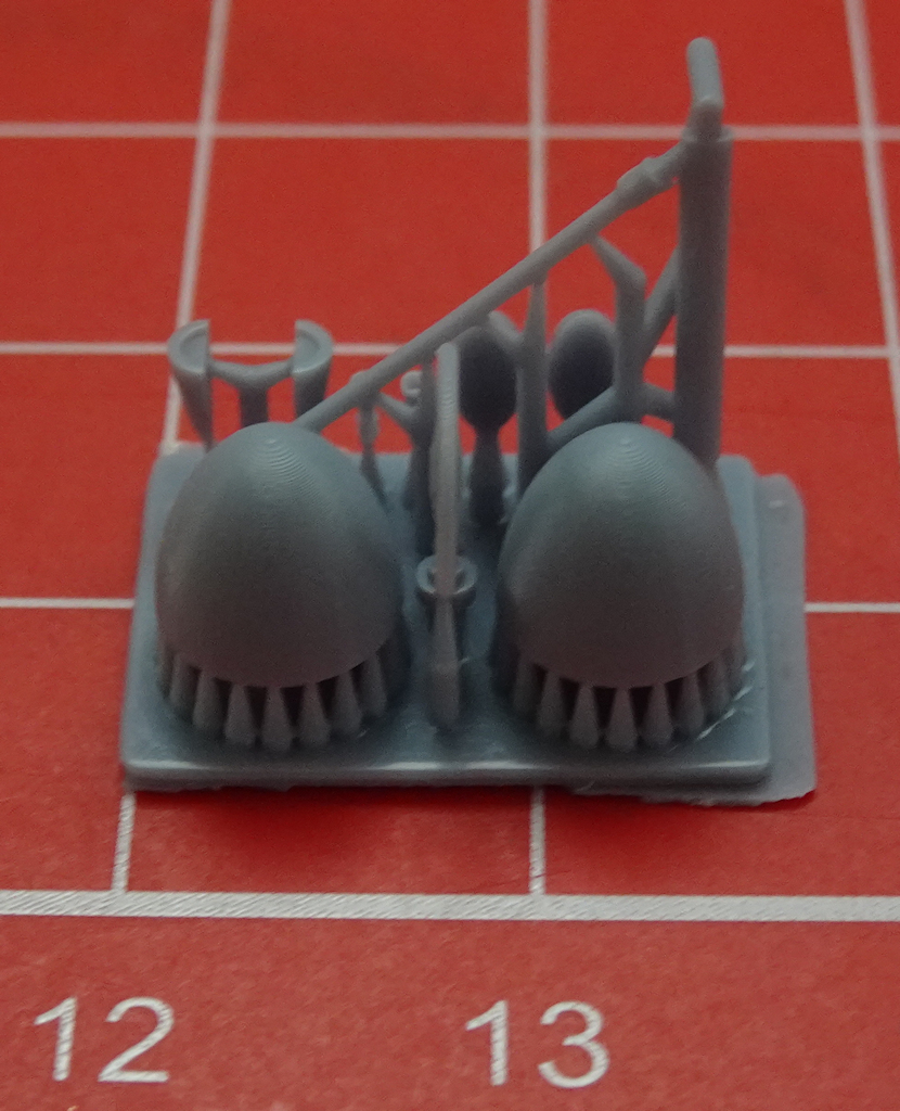 Das Fahrwerk ist gut gemacht. Defizite gibt es bei den Hauptfahrwerksrädern. Diese sollte man durch Resinräder aus dem Zubehörhandel zu ersetzen. Auch die kleinen R-1820 sehen etwas einfach aus. Hier findet man sicher auch schnell Ersatz. Die Propeller bestehen aus vier Teilen mit drei separaten Blättern. Die genaue Stellung sollte anhand von Fotos ergründet werden. Die Bauanleitung schweigt hierzu. Je nach Bemalungsvariante muss auch eine unterschiedliche Antenne montiert werden.