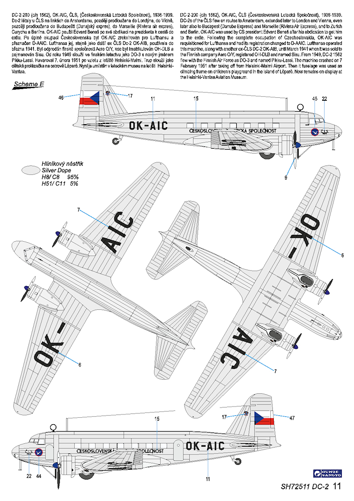 - DC-2-200, c/n 1562, OK-AIC der CSL, später D-AAIC der Lufthansa, CSR bis zum Frühjahr 1939.