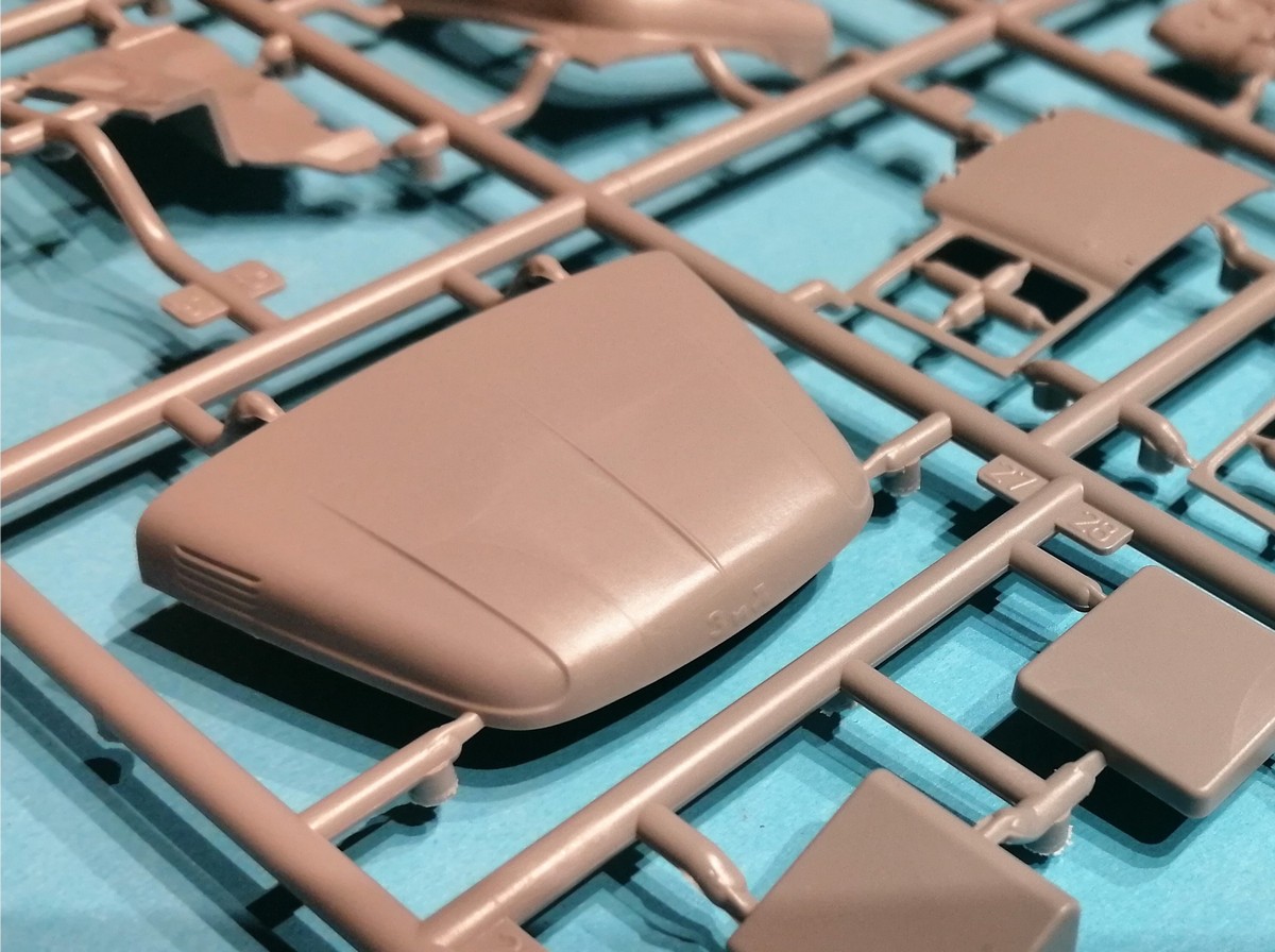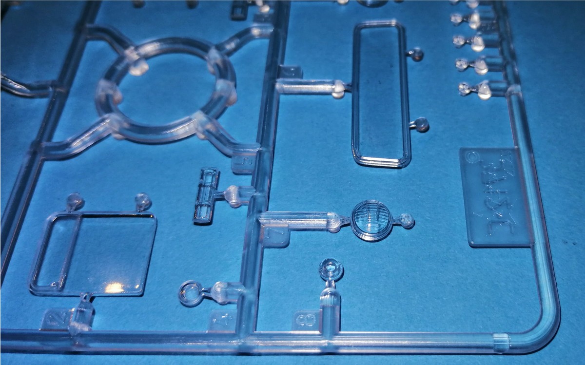 Eine nette Dreingabe ist hier auch die vorhandene Spiegelfolie für die Außenspiegel. Die Klarsichtteile umfassen neben den Fenstern auch alle Elemente der Beleuchtung, wodurch diese am Ende sehr realistisch aussehen sollte. Der Hersteller verwendet hier einen etwas weicheren Kunststoff, welcher nicht so resistent gegenüber starkem Alkohol wie Isopropanol sein soll. Also ist hier etwas Vorsicht geboten bei der Entfernung von Fingerabdrücken.