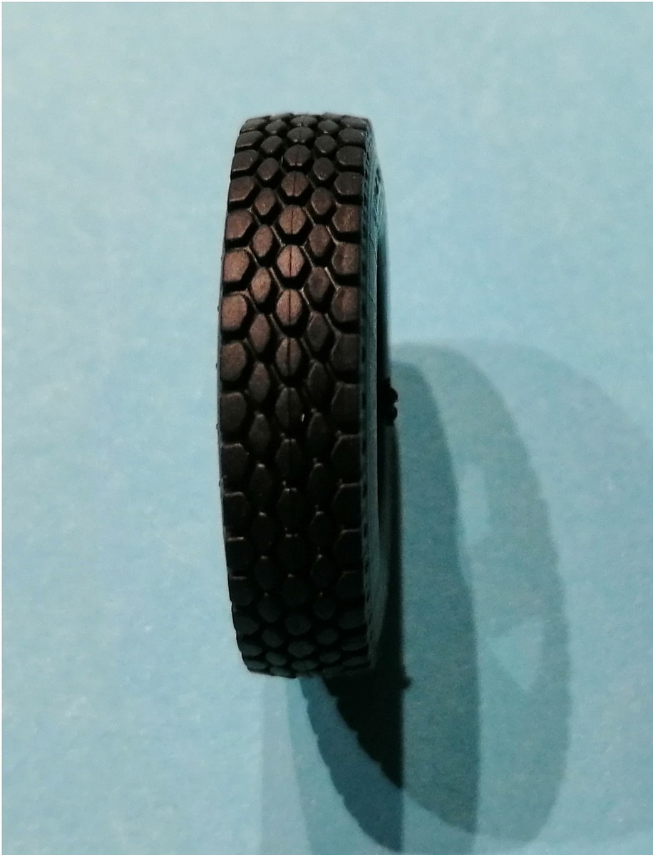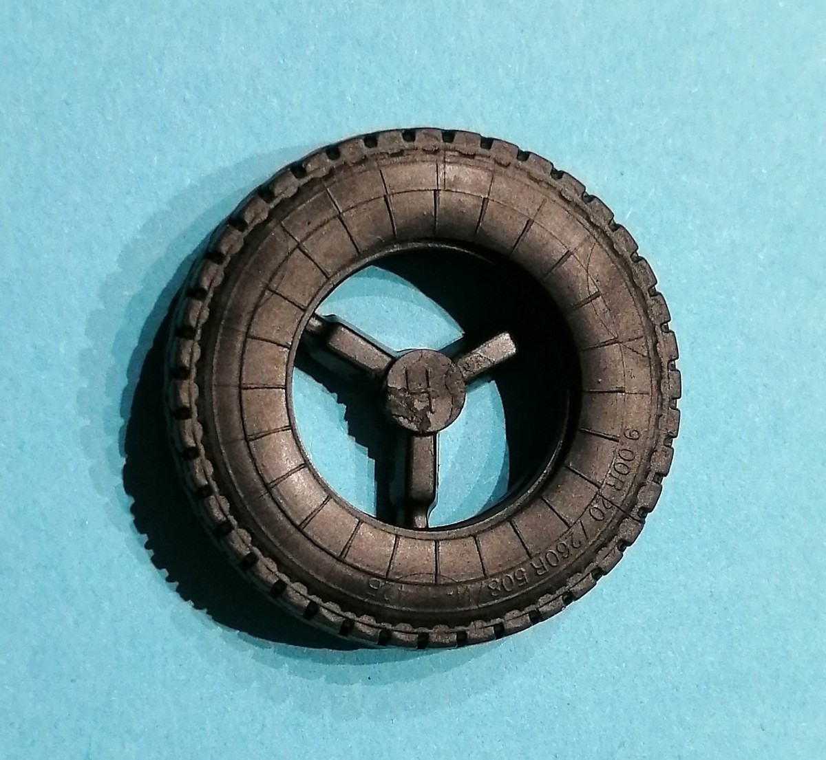 Die Vorderachse aus der Box gebaut lässt leider keinen Lenkausschlag zu. Gut gelungen finde ich die Reifen aus einem recht festen Vinylmaterial. Das Profil ist sehr gut wiedergegeben und auch an den Flanken finden sich Aufdrucke wie die Größenangaben. In den letzten Abschnitten wird der Bau mit der Montage von weiteren zahlreichen Teilen abgeschlossen, unter denen sich auch filigrane Teile wie die Spiegelaufnahmen befinden.