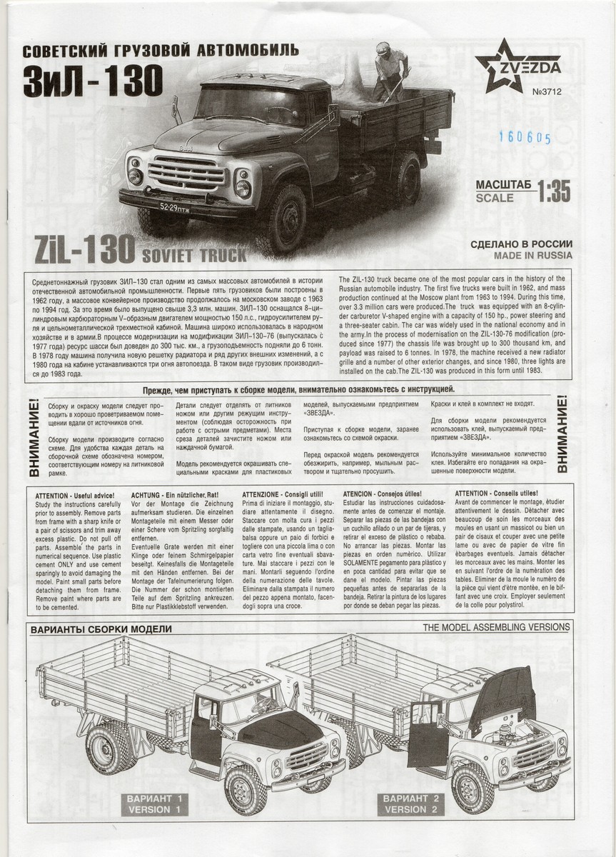 Vorbild: Der ZIL-130 ist ein Lastkraftwagen, der ab 1962 zuerst vom sowjetisch/russischen Fahrzeughersteller Sawod imeni Lichatschowa produziert wurde. Außer der weit verbreiteten zweiachsigen Version gab es auch den Dreiachser ZIL-133, sowie eine militärische Version mit drei Achsen, umgestaltetem Fahrerhaus und Allradantrieb, den ZIL-131. Der ZIL-130 wurde in viele Länder exportiert, nicht nur in den ehemaligen Ostblock. Neben Fahrzeugen wie dem leichteren GAZ-53 oder dem etwas größeren MAZ-500 prägte er das Straßenbild der Sowjetunion über mehrere Jahrzehnte.