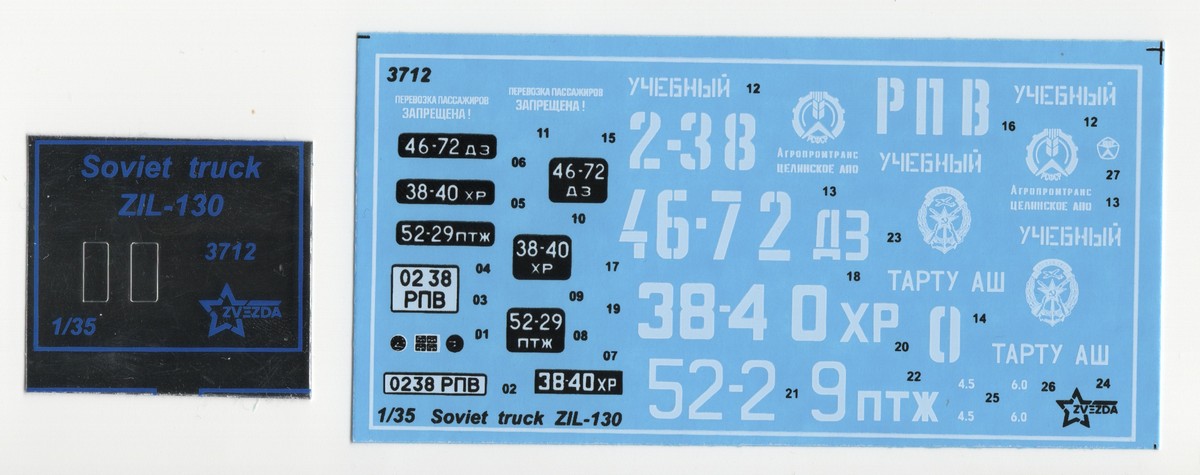 Bausatz: Im Maßstab 1/35 präsentiert Zvezda als Neuheit den ZIL-130. Bisher fand sich dieser im Programm dieser Firma „nur“ in 1/43. Im schon bekannten, zweiteiligen Karton finden sich 253 Teile an fünf Rahmen plus sieben einzelne Reifen aus Vinyl. Als Vorbild hat man sich die klassische Variante mit Pritschenaufbau und Merkmalen der Produktion Anfang der 1980er Jahre gewählt.