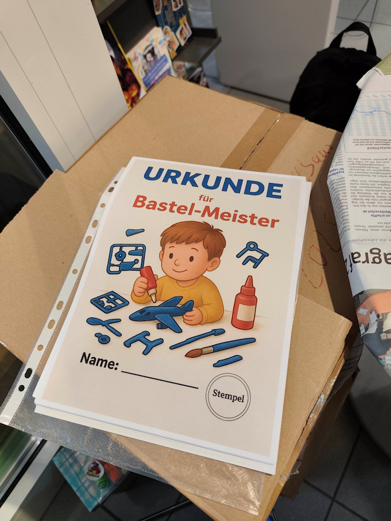 Ein besonderer Anziehungspunkt war der Mitmachbereich für Kinder, in dem unter Anleitung erfahrener Modellbauer fleißig gebastelt wurde. Über 20 Kinder fertigten mit großer Begeisterung Faller-Häuser und kleine Flugzeuge an. Als Anerkennung ihrer Kreativität und Ausdauer erhielt jedes Kind zum Abschluss eine Urkunde als „Bastelmeister“ – ein Highlight, das für strahlende Gesichter sorgte.