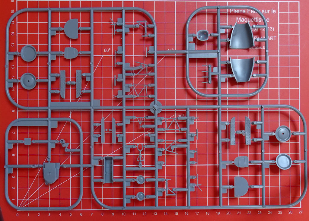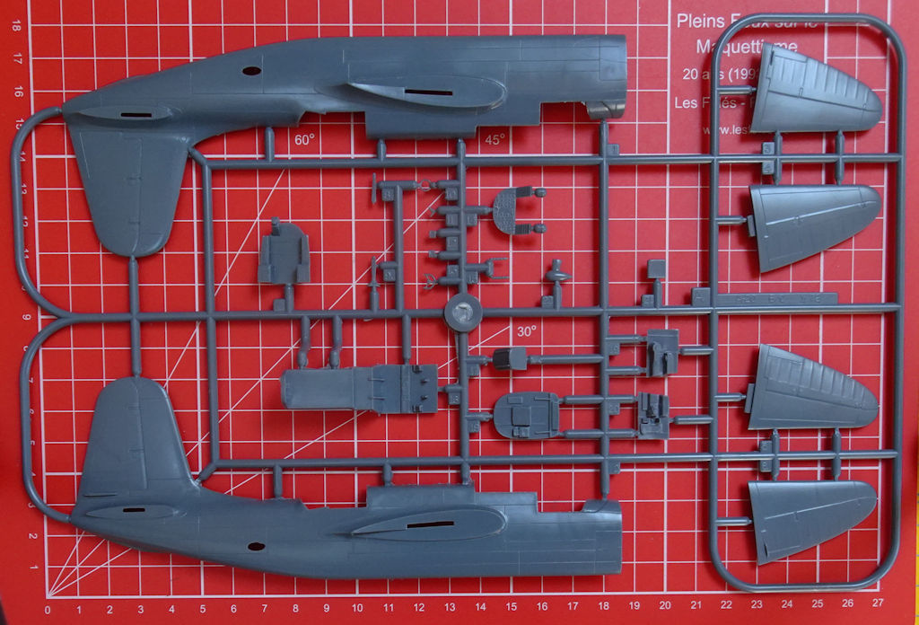 Im attraktiven Stülpkarton befinden sich gut verpackt fünf graue Spritzlinge mit 116 Einzelteilen, ein klarer Spritzling mit zehn Teilen, ein Decalbogen und die mehrfarbige Bau- und Bemalungsanleitung. Ein paar Teile sind für andere Versionen bestimmt und wandern in die Restekiste. Die Abspritzung und die Details sind hier sehr in Ordnung, denn sie sind seit Jahren unter den Labels MPM und special hobby auf dem Markt. Hier gibt es gut gemachte Strukturen und feine Gravuren. Auch die Glasteile sind dünn und klar.