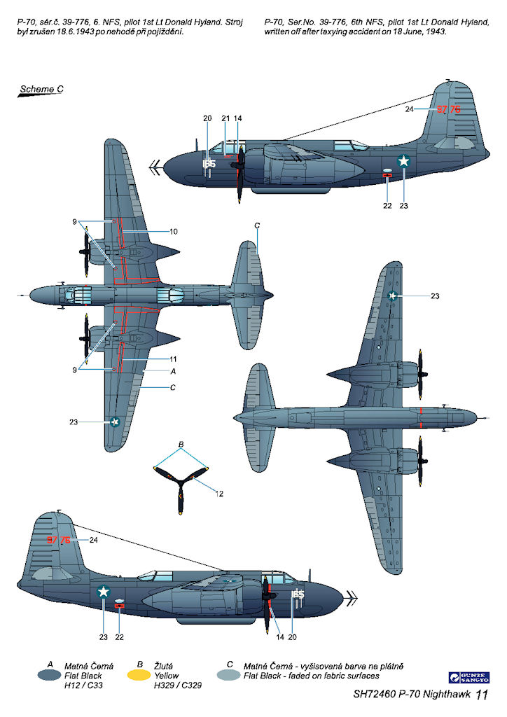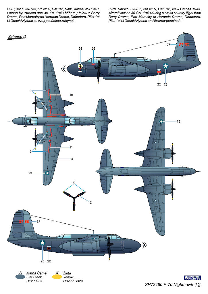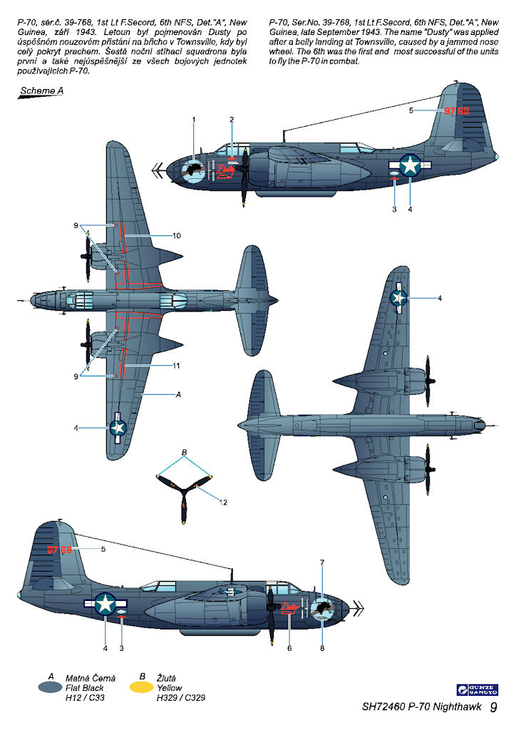 - P-70, Ser.No. 39-768, „Dusty“ von 1stLt. F. Secord, 6. NFS der USAAF, New Guinea, Ende September 1943;