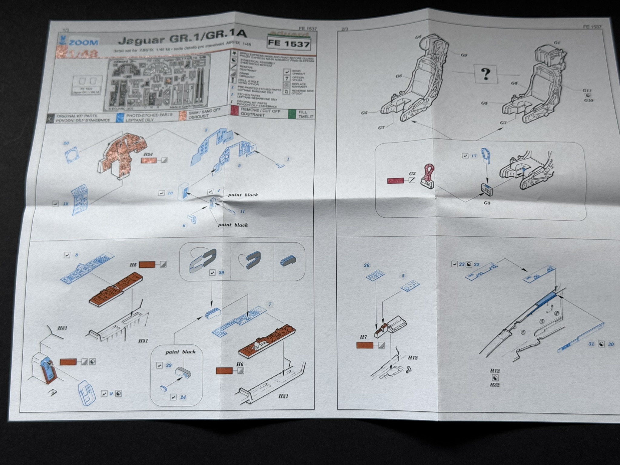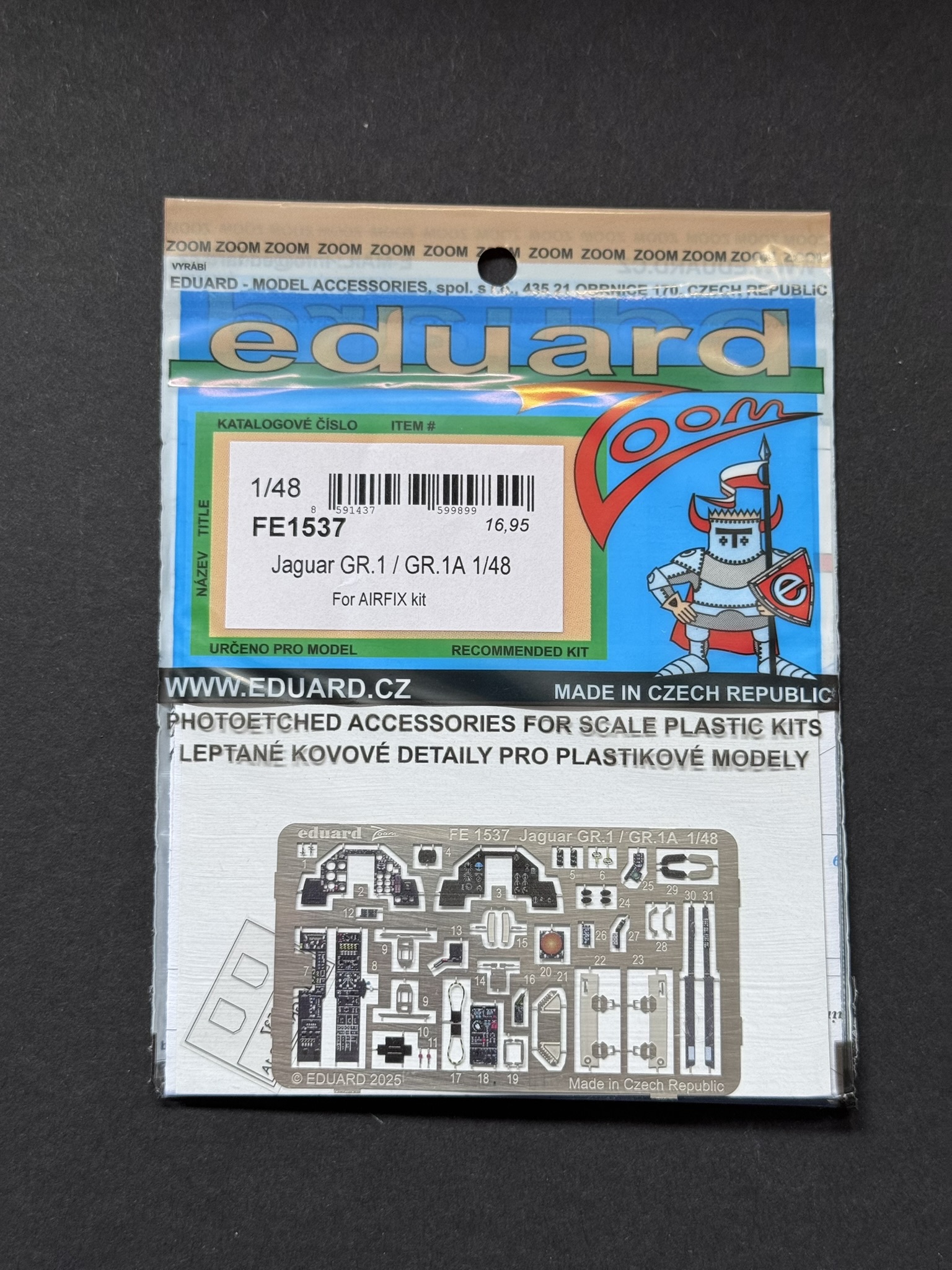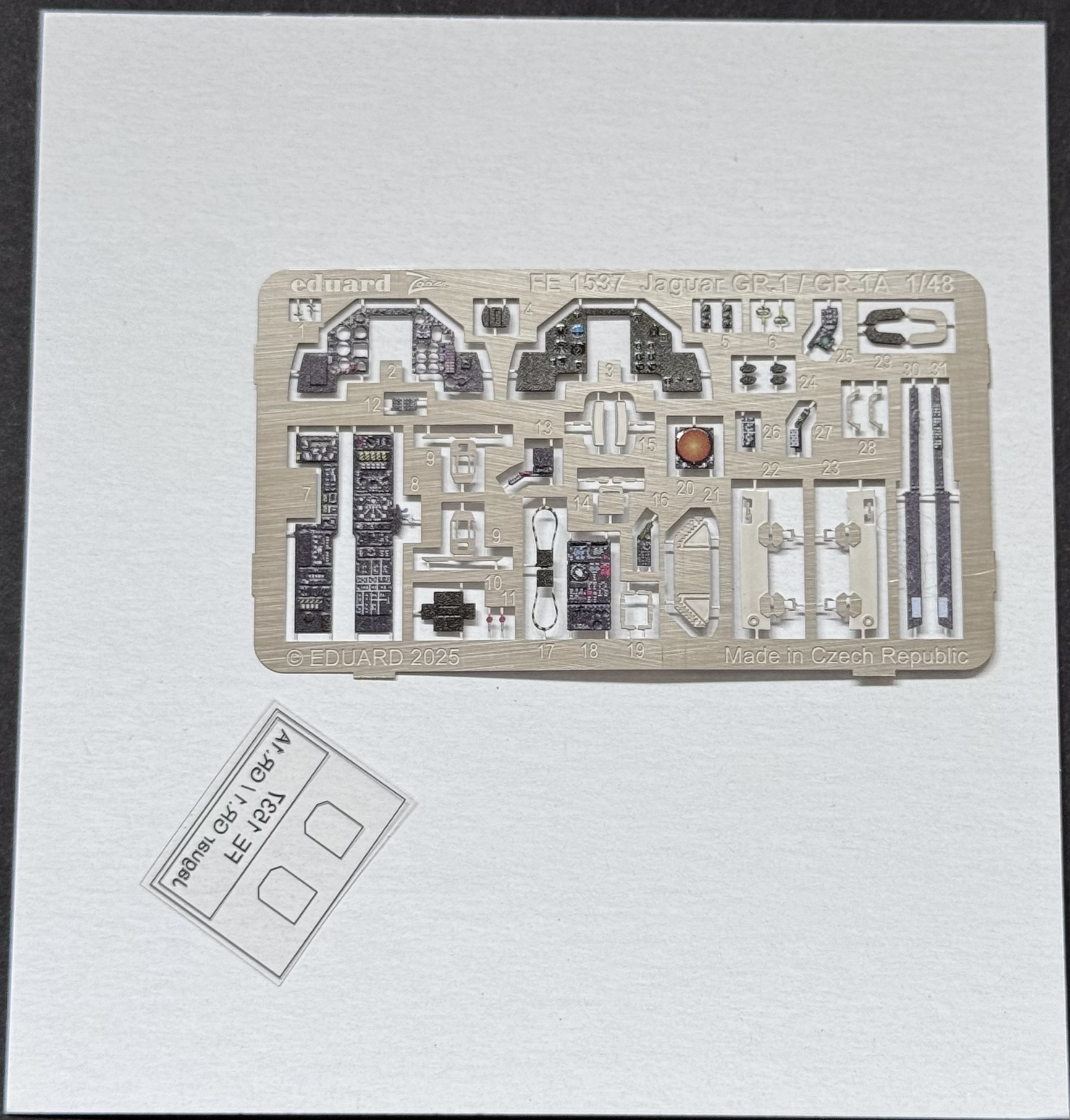 Eduard bringt mit diesem Zoom-Set ein farbig bedrucktes PE-Cockpit-Set für den fantastischen Jaguar-Bausatz von Airfix heraus. Der Bausatz hat zwar bereits sehr schöne Details, aber Eduard legt hier noch einmal eine Schippe drauf und bringt noch mehr Tiefe ins Cockpit.