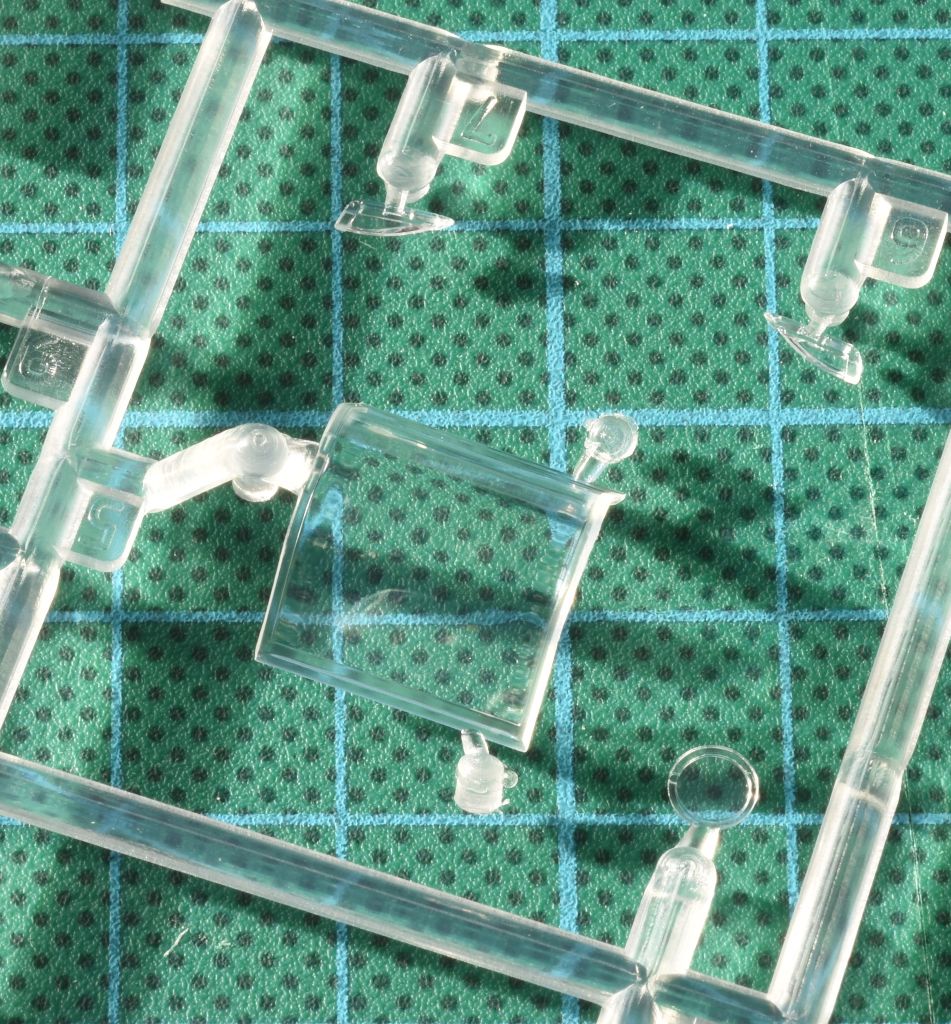 Die Klarsichtteile scheinen gegenüber vielen früheren Ergebnissen von Zvezda deutlich verbessert. Das betrifft das Material, die Abspritzqualität (Wandstärke der Bauteile) und die Durchsichtigkeit.