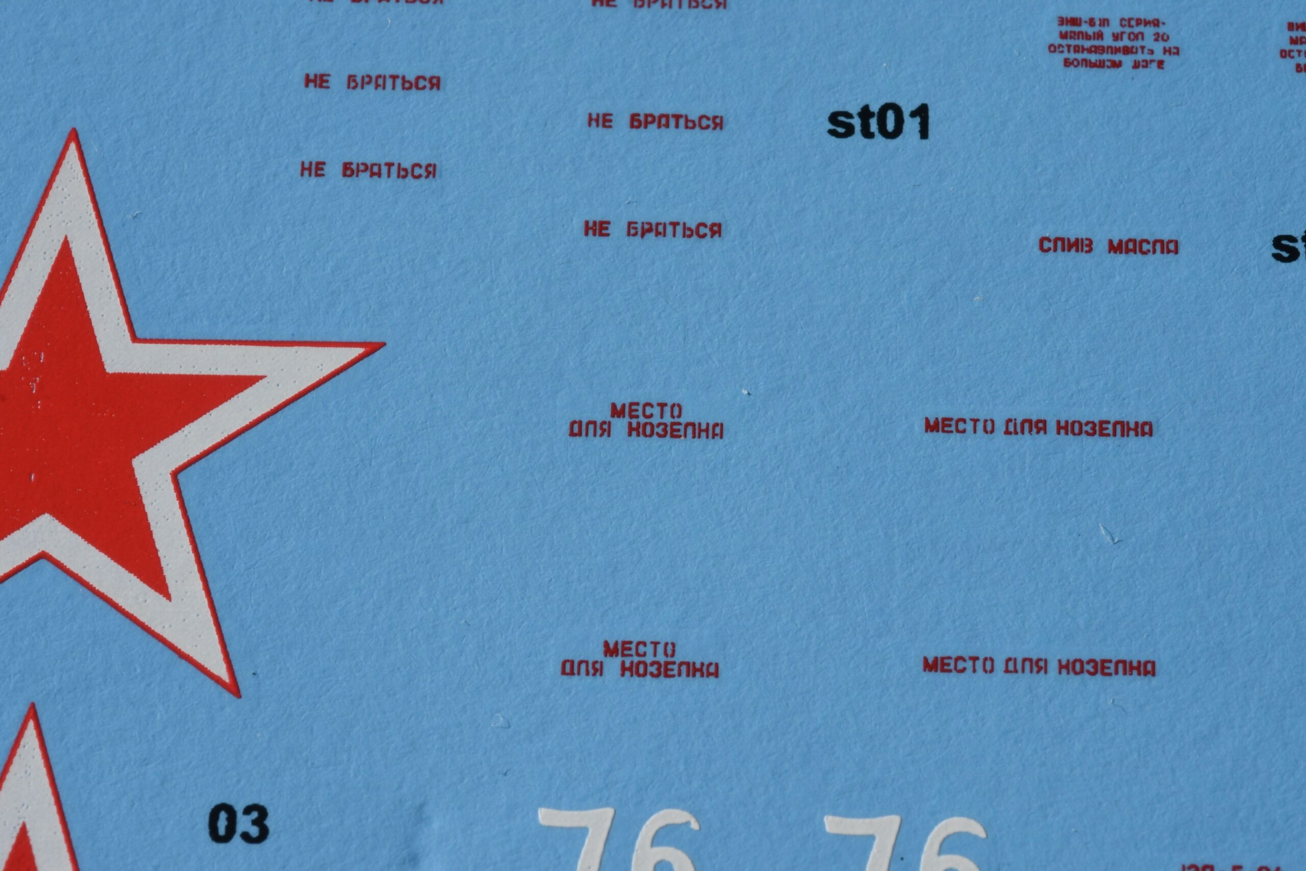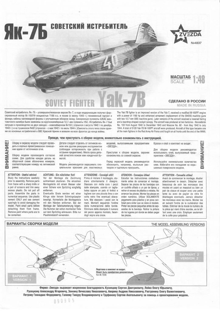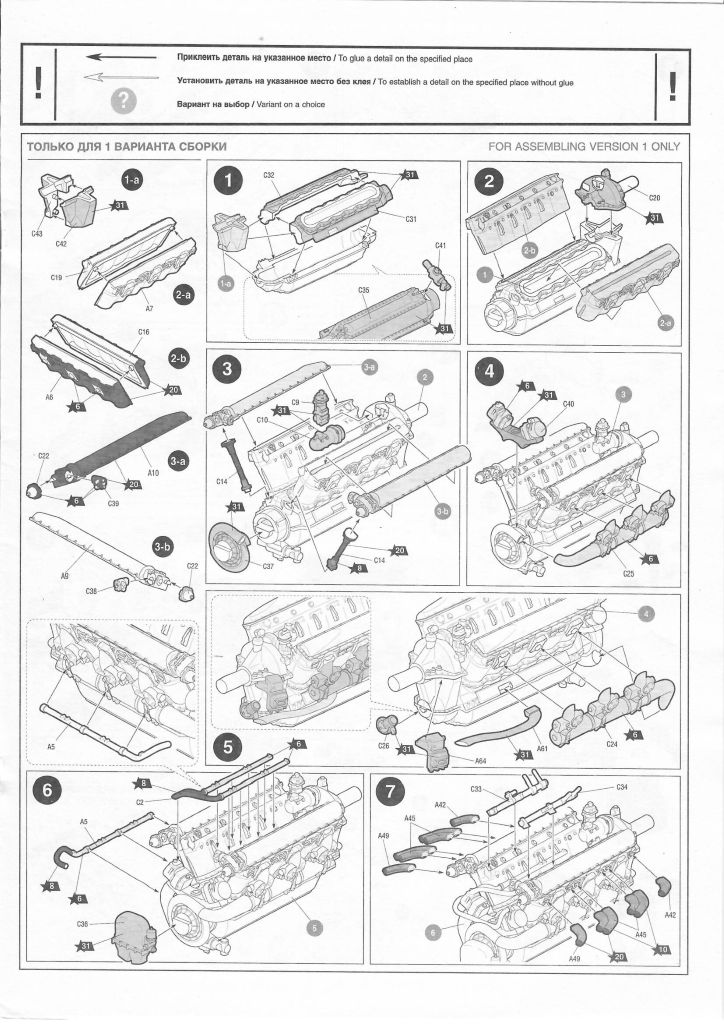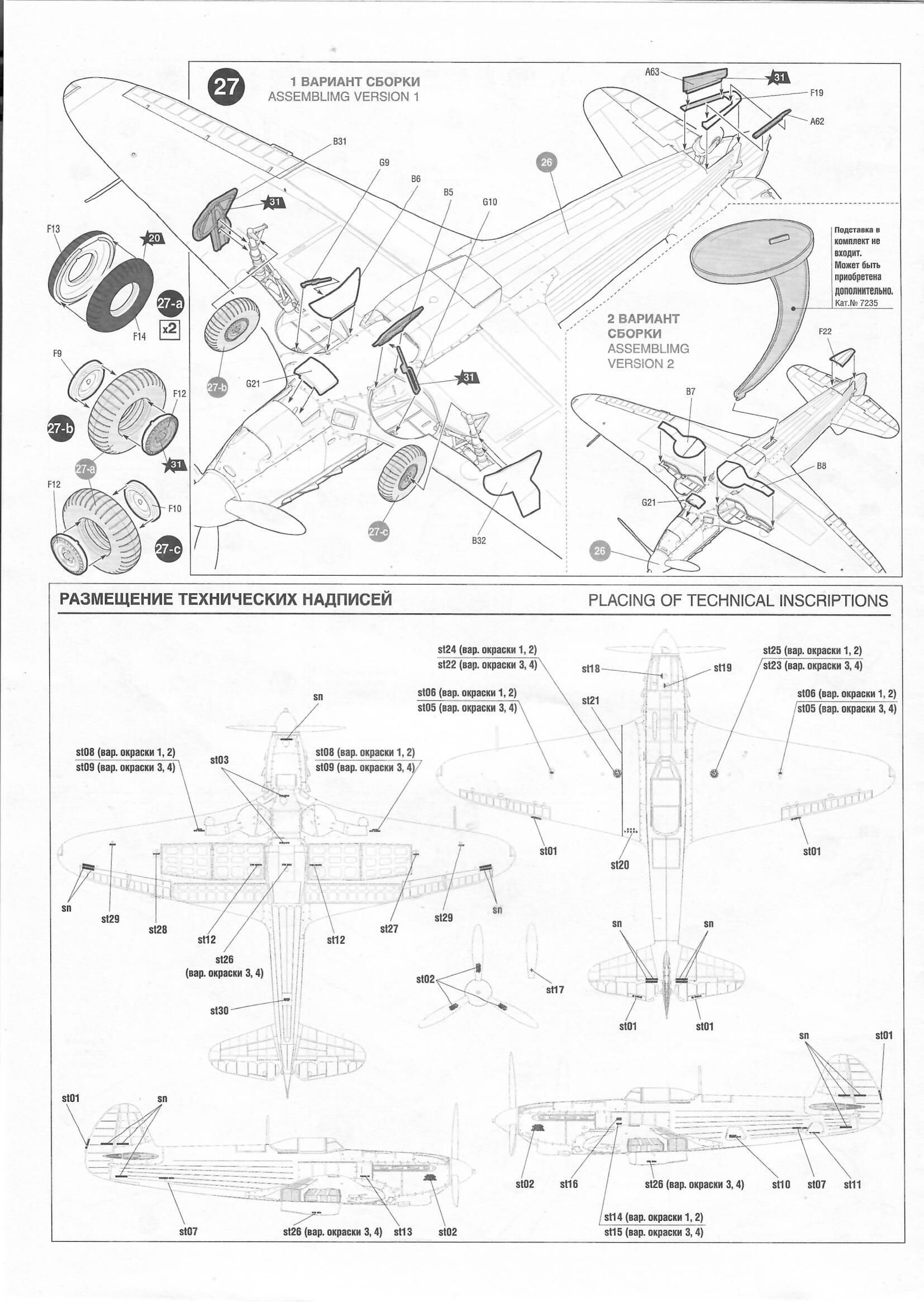 Die Bauanleitung ist ebenfalls sehr typisch für Zvezda. Immerhin kommt sie als geheftete Version. Teilweise ist sie unübersichtlich, die genaue Platzierung von Teilen lässt sich nur erahnen, und vor allem bedarf sie eines gründlichen Studiums vor dem Bau des Modells. Aus diesem Grunde soll sie hier vollständig dokumentiert sein.