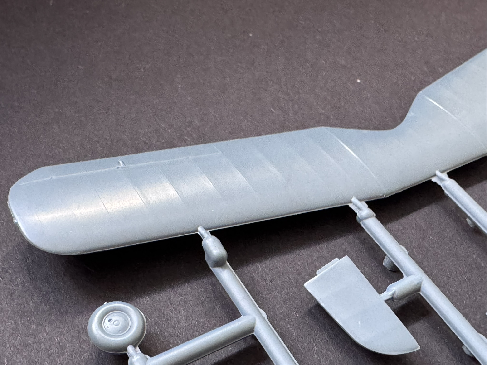 Die Details im Plastik sind durchaus sehenswert, die bespannten Flügel haben ein realistisches Aussehen. Der PE-Bogen ist ebenfalls ein sehr willkommenes Zubehör. Er enthält das Instrumentenpanel, Sitzgurte und diverse andere Kleinteile, die man in einem Bausatz dieses Herstellers sonst eher selten findet.