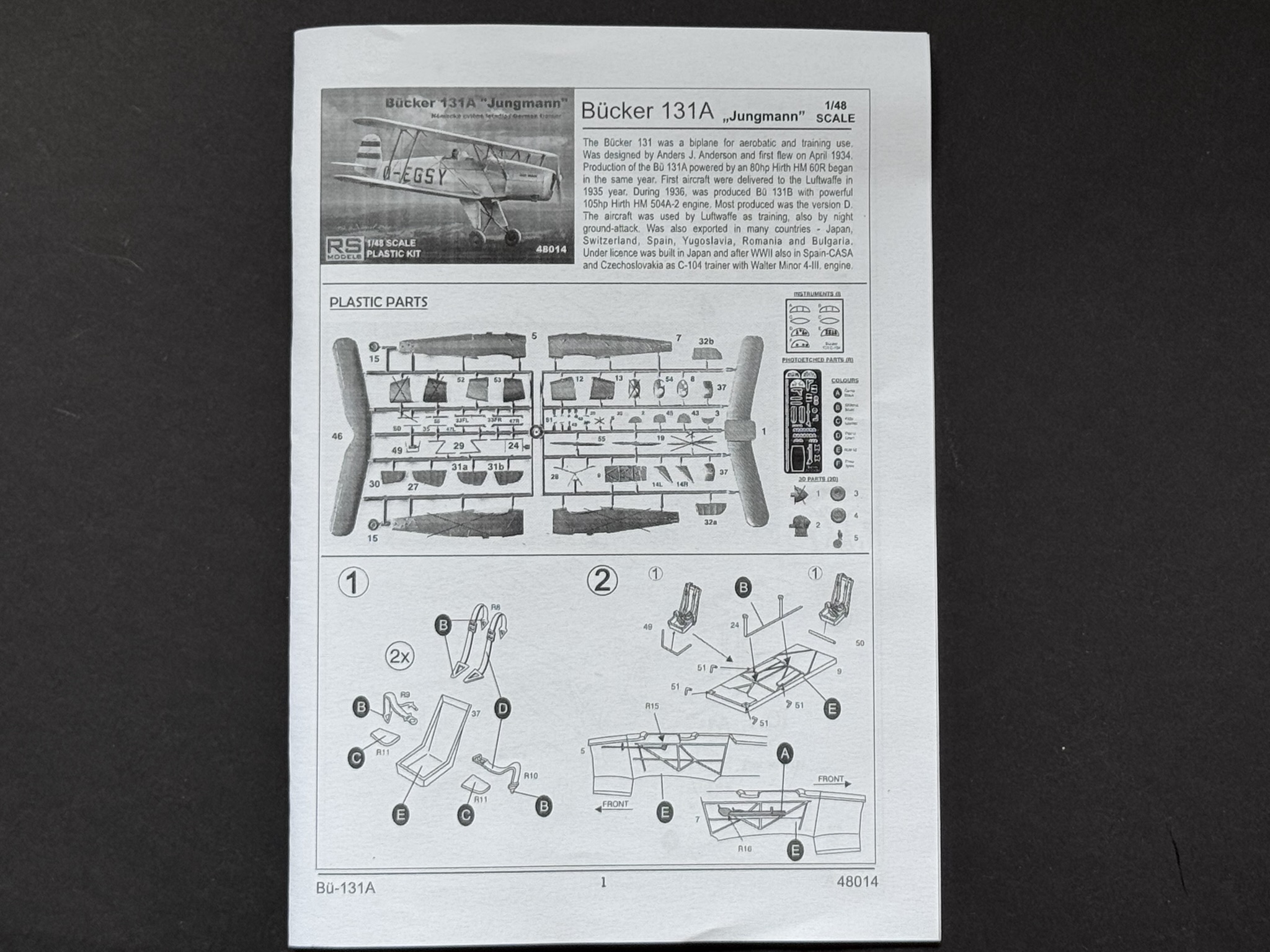 Fazit: Für einen 2024 erschienenen Bausatz ist er, was Anleitung und die grundsätzliche Art der Gussteile betrifft, nicht ganz auf der Höhe der Zeit. Auf der anderen Seite bekommt man aber reichlich PE-Teile und 3D-gedrucktes Zubehör. Für einen Preis knapp unter 30 € ist das ein wirklich guter Deal und für Liebhaber der Bücker mit Sicherheit eine lohnende Wahl.
