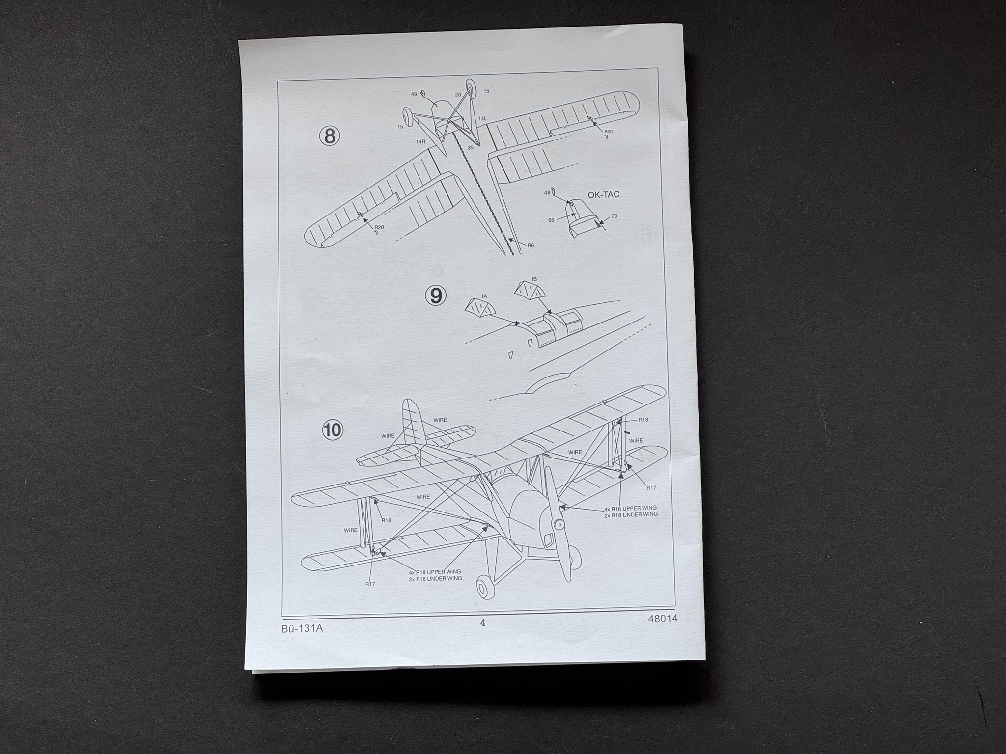 Anleitung: Die Anleitung liegt als kleines, in Schwarz-Weiß gehaltenes Heftchen bei. Auf der Vorderseite findet man einen Überblick über die im Set enthaltenen Teile sowie einige Informationen zum Vorbild. Der eigentliche Bau ist klar und deutlich bildlich dargestellt, sodass hier niemand vor größere Probleme gestellt werden sollte. Positiv hervorzuheben ist, dass auch die Verspannung der Flügel erklärt wird. Bemängeln könnte man höchstens, dass die Anleitung in der heutigen Zeit farbig und auf Hochglanzpapier durchaus ansprechender wirken könnte.