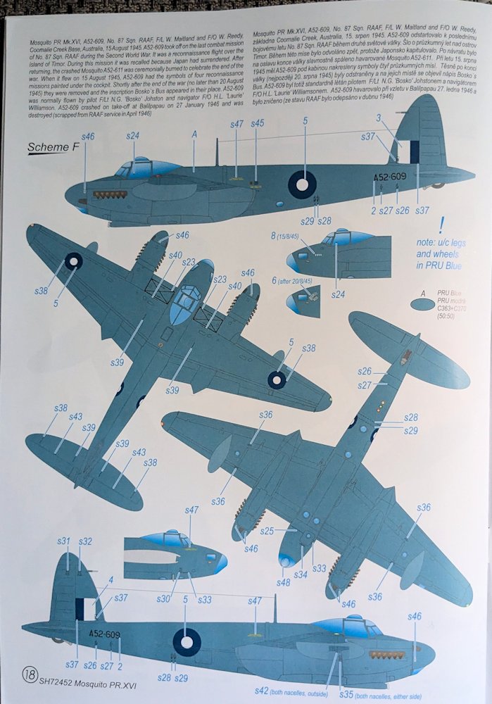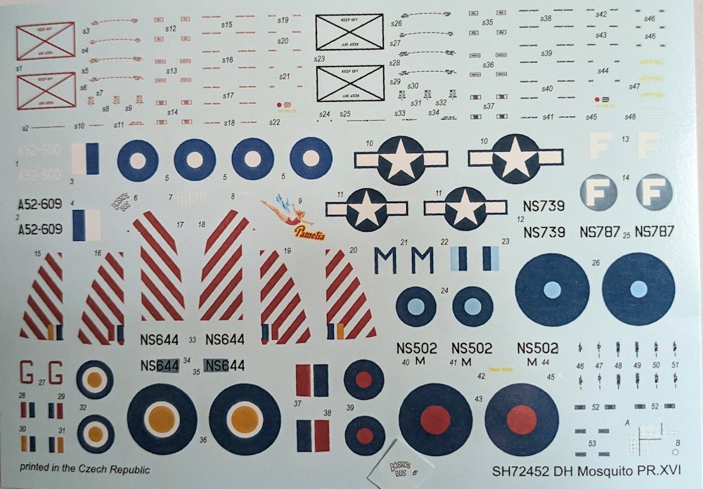 Die sauber gedruckten Abziehbilder liefern Wartungshinweise und die Deko für sechs Maschinen: drei der RAF, zwei der RAAF und eine USAAF.