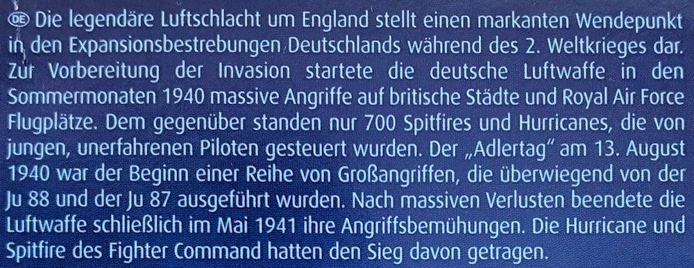 Einführung: Aus Anlass der 85. Wiederkehr der ,,Luftschlacht um England/Battle of Britain ‘‘legt Revell sein 2020 erschienenes Geschenkset neu auf. Das Unternehmen aus Bünde gibt die geschichtlichen Ereignisse wie folgt wieder.