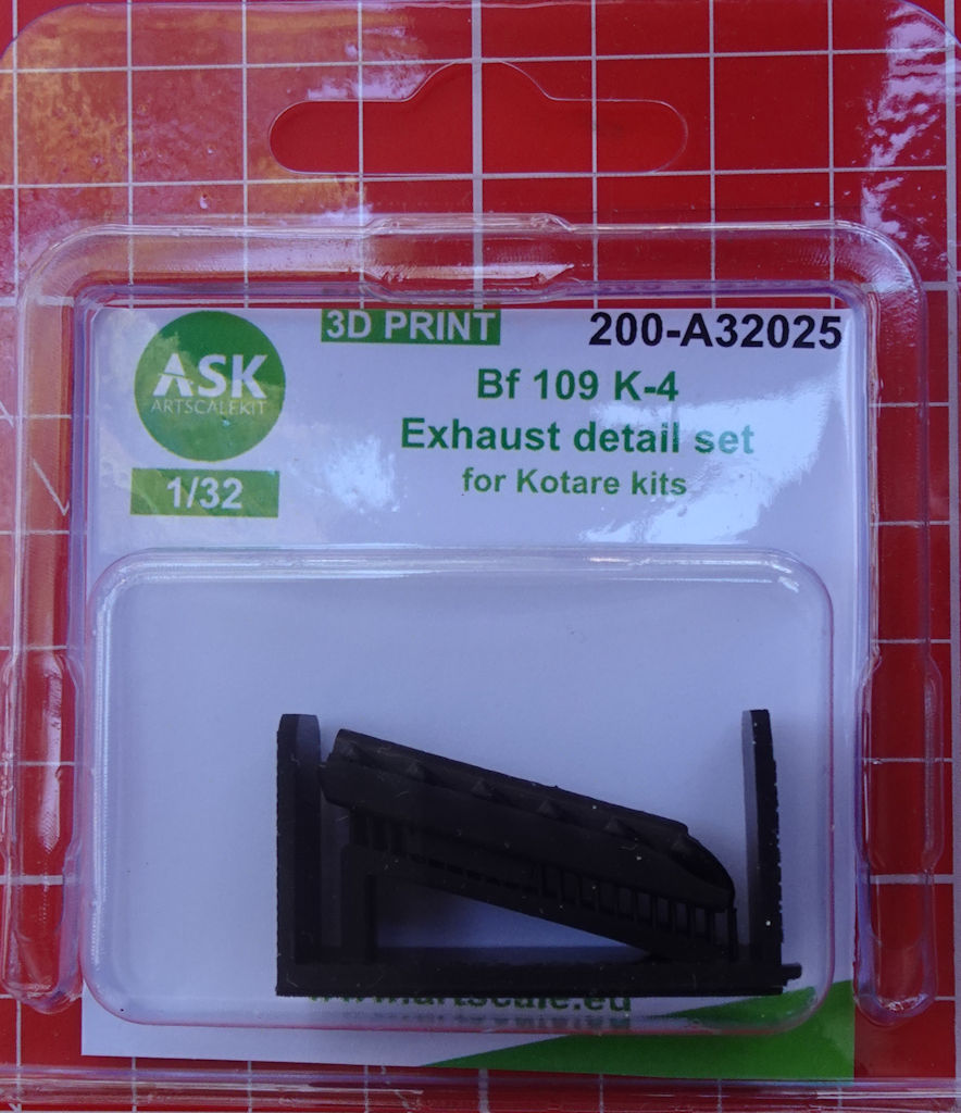Für die Messerschmitt Bf 109K-4 im Maßstab 1/32 von Kotare hat ASK ein Set mit Abgaskrümmern herausgebracht. In der kleinen Klarsichtverpackung befinden sich zwei gedruckte Teile.