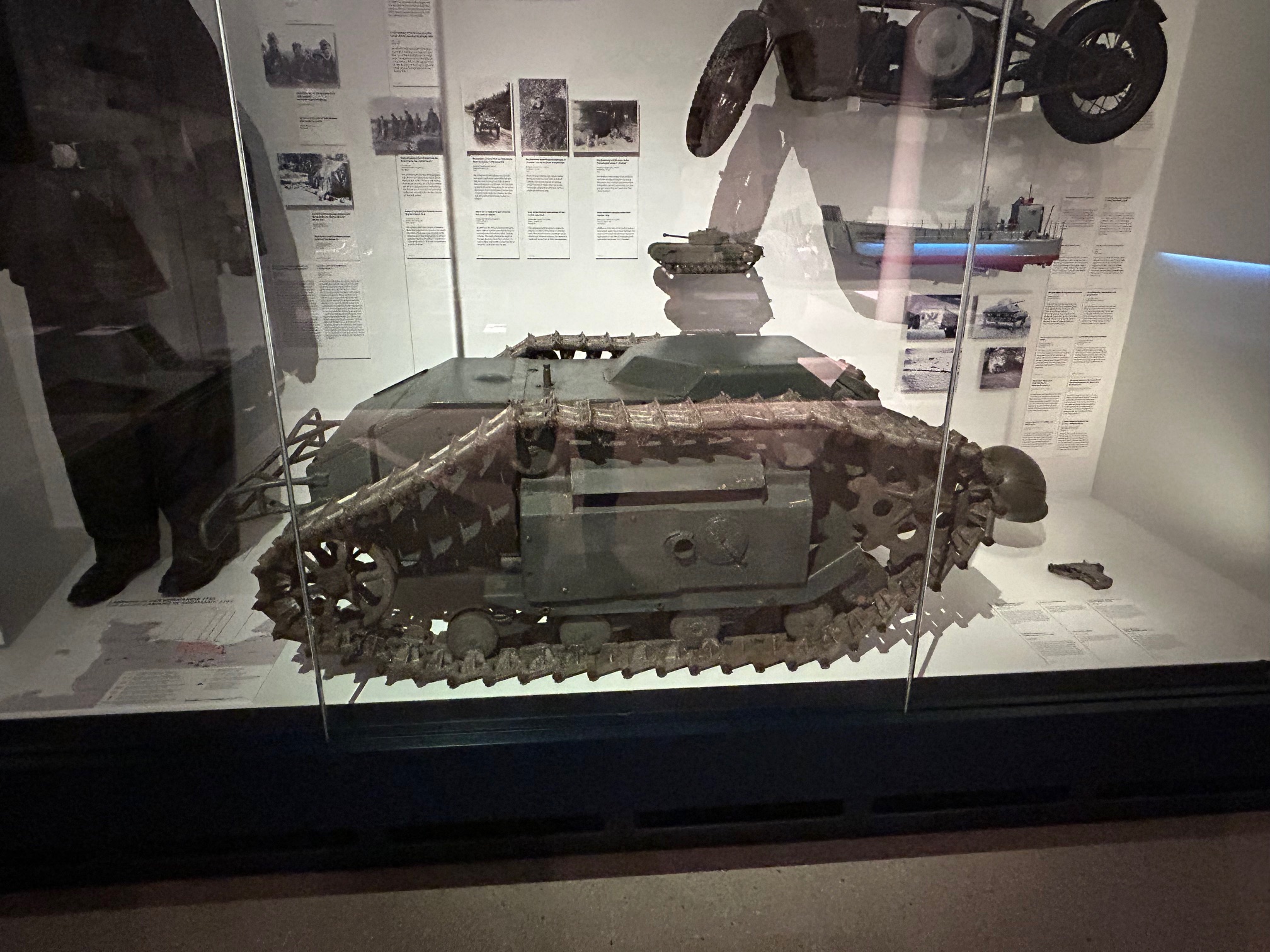 Symptomatisch für das aus meiner Sicht oftmals polarisierende Museumskonzept werden auch hier Ursache und Wirkung direkt präsentiert: Direkt gegenüber von verschiedenem militärischem Gerät befinden sich Vitrinen, in denen Prothesen für Kriegsinvaliden aus verschiedensten Epochen gezeigt werden.