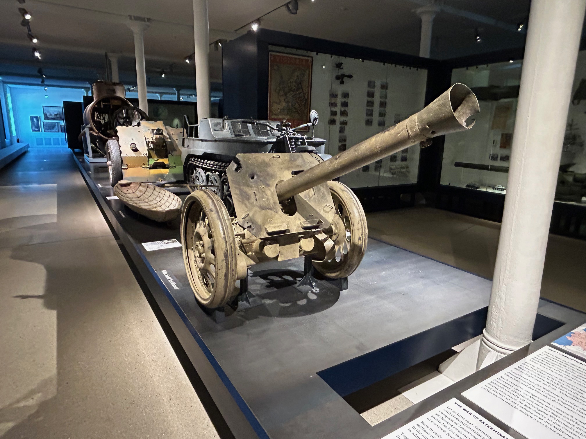 Dieser Eindruck wird auch im Inneren weiter verstärkt, denn nach dem Betreten des Eingangs merkt man, dass es sich hier nicht einfach um eine umfangreiche Kollektion militärischer Relikte handelt, die man dicht an dicht gedrängt inspizieren kann. Nein, auf den über fünf Etagen verteilten 10.000 qm Ausstellungsfläche werden „nur“ knapp 10.000 Exponate gezeigt. Oftmals steht man in eher schlichten und nahezu leer wirkenden Räumen vor nur einer Themenpräsentation, die einen dann aber wirklich wie auch mental beeindruckt und einnimmt. Hier ist also weniger mehr.