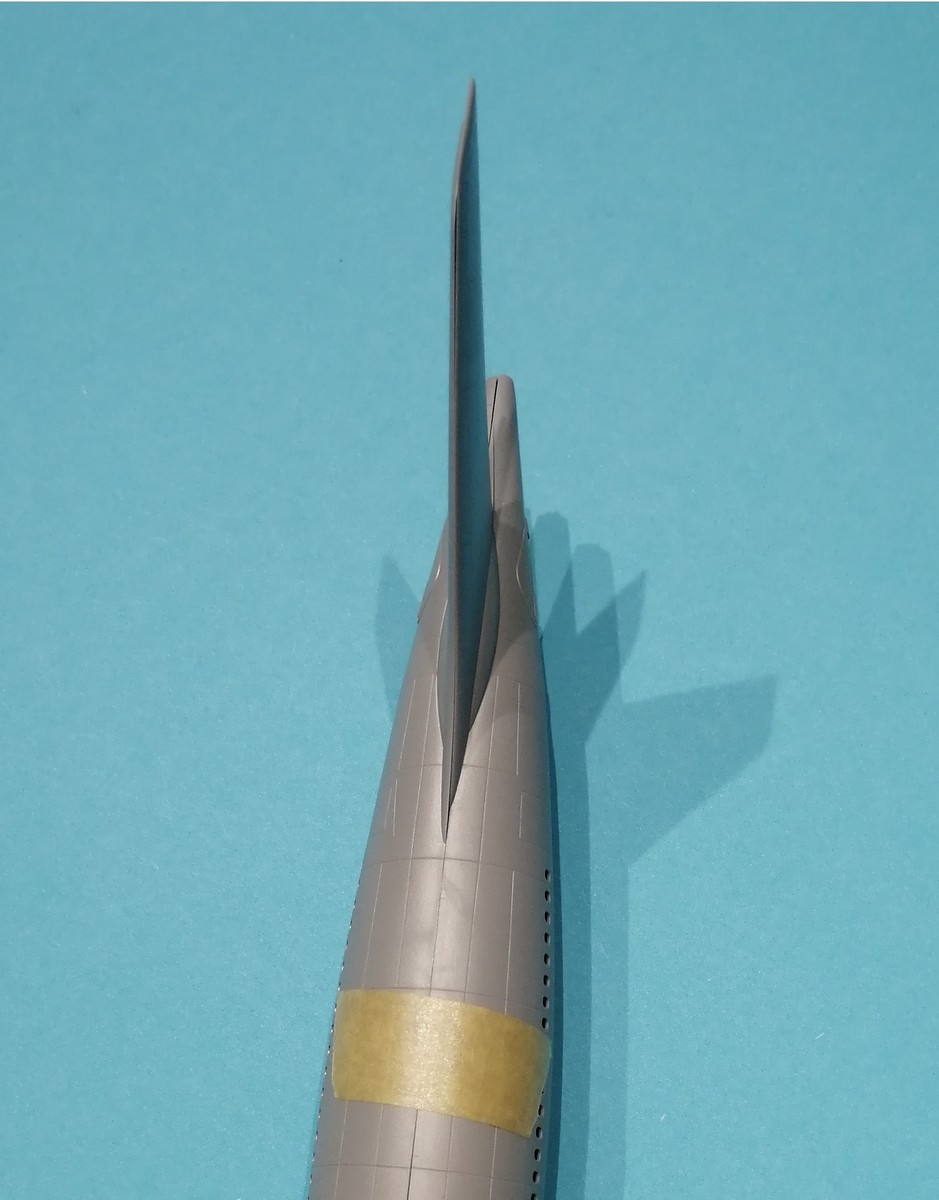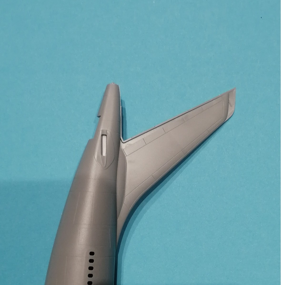 Diese Frage kann mit ja beantwortet werden. Neben dem Unterschied in der Höhe von 4mm ist auch eine leicht abweichende Position auf dem Rumpf umgesetzt worden (siehe Bilder). Das passende Seitenruder D22 dazu ist auf dem unveränderten Rahmen D. Apropos unverändert, bis auf den neuen Rahmen mit den Rumpfteilen ist der restliche Lieferumfang des Kits gegenüber der hier schon vorgestellten Ursprungsausgabe 7044 gleich. Noch eine Anmerkung, innerhalb der noch laufenden Produktion gab es einen Wechsel auf das „normale“ Seitenleitwerk vom -300. Daher kann man diesen Kit theoretisch nicht für jeden -200er oder die z.B. die MRTT hernehmen.