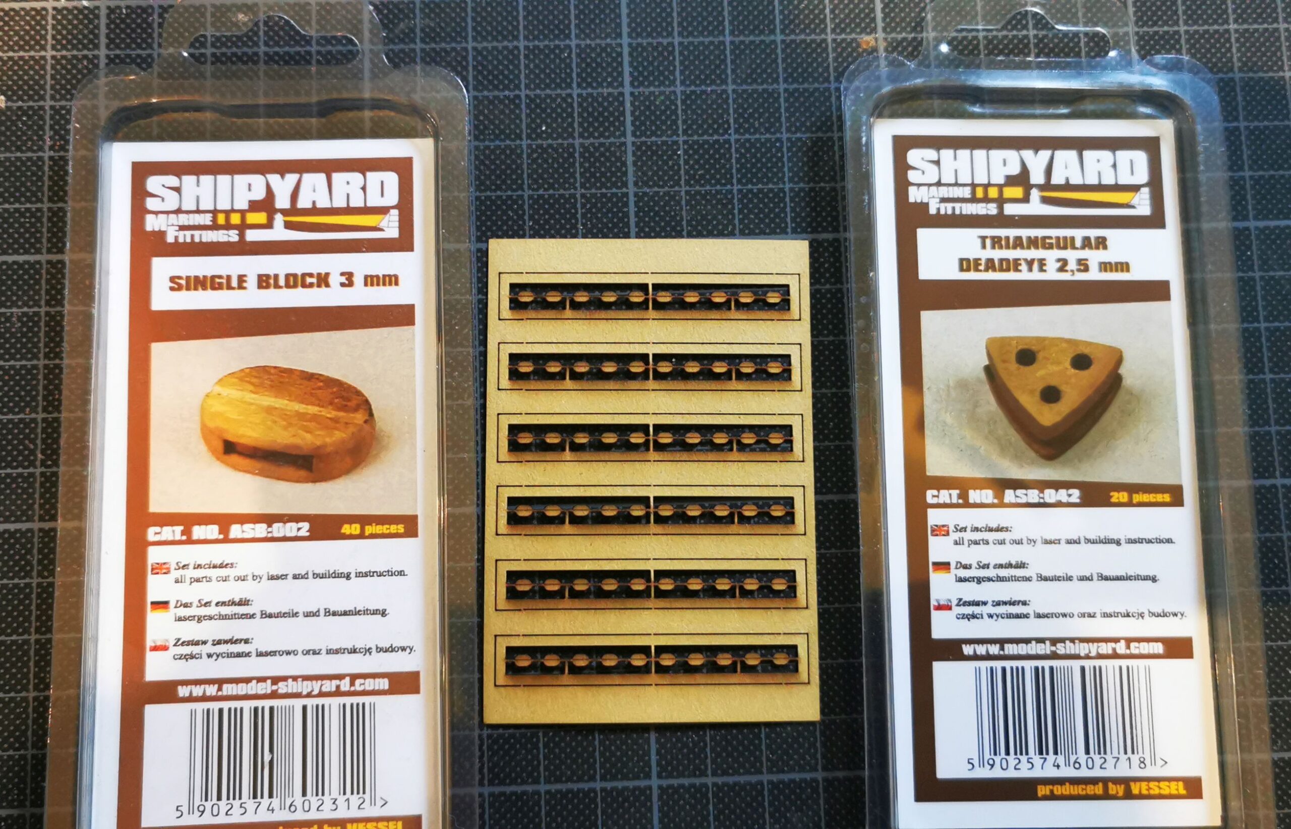 Welcher Fan von historischen Segelschiffen aus Plastik kennt das nicht. Man erwirbt ein wunderschönes Modell, aber spätestens beim erstellen der Takelage hört meistens der Spaß auf, und Frust macht sich breit. Entweder es liegen gar keine Blöcke, oder nur solche aus Plastik bei. Diese Blöcke und Jungfern, wie sie den Bausätzen beiliegen, kann man nicht wirklich als optimal bezeichnen. Sie passen oft im Maßstab, Form etc. nicht zum Modell. Und wenn gar keine Blöcke beiliegen wird es richtig ärgerlich. Bei einem Maßstab von 1:144 und kleiner könnte man vielleicht noch damit leben, aber je größer das Modell wird, desto bescheidener fällt das Ergebnis aus. Gott sei Dank bietet der Zubehörhandel (meist) passende Abhilfe für solche Fälle. Allerdings hat das auch seinen Preis! So kosten zum Beispiel 10 Blöcke aus Holz in 5 mm etwa 2,20 €. Da man ca. 200 Stück (unterschiedliche Größen bei Takelung mit Segeln) benötigt, kommt da ganz schön was zusammen. Meistens bekommt man auch nur die Größen 2, 3, 5, 7 und 10 mm. Hier bieten sich als Alternative die Produkte von Shipyard aus Polen an, da sie auch Sonderformen (Blöcke, Jungfern) anbieten.