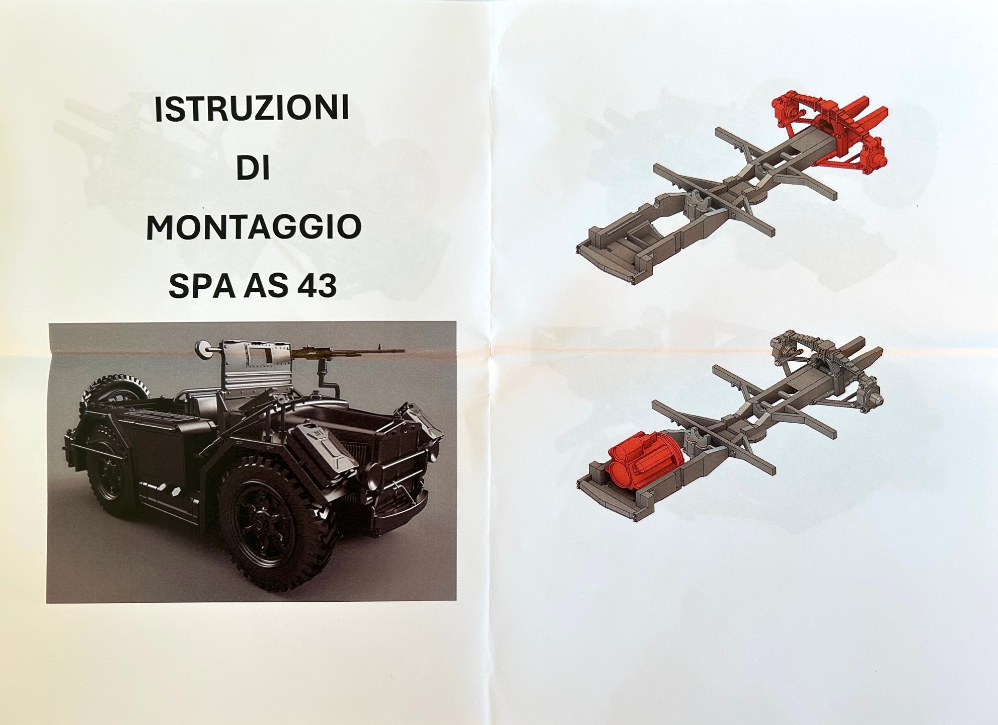 Das Vorbild: Der leichte Truck SPA Viberti AS43 war ein italienisches Aufklärungsfahrzeug, das für die Regio Esercito (italienische Königliche Armee) zur Fernaufklärung in der nordafrikanischen Wüste, zum Überfall auf alliierte Konvois, zur Bekämpfung der Long Range Desert Group (LRDG) und zur Eskortierung von Achsenkonvois auf den Wüstenstraßen entwickelt wurde. In der Regel waren die Fahrzeuge mit Halterungen zur Aufnahme von 8-mm-Maschinengewehren vom Typ Mitragliatrici Medie Breda Modello 1937 oder Modello 1938 versehen, die zur Flugabwehr und zur Bekämpfung von Personen eingesetzt wurden.