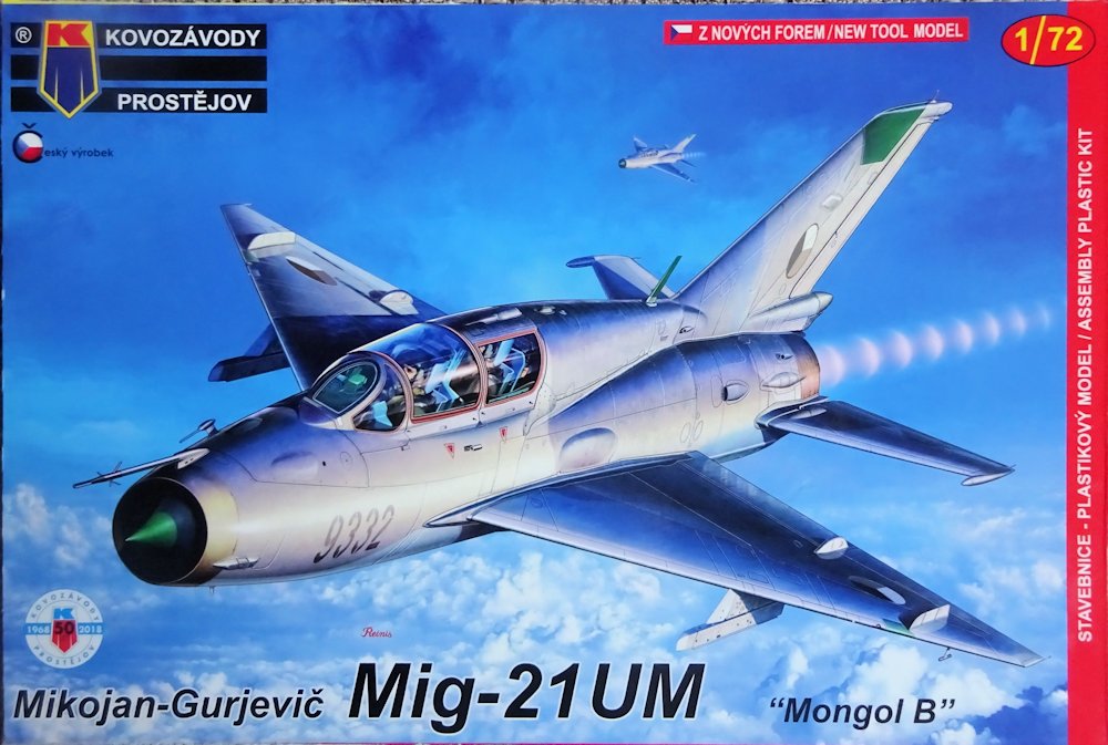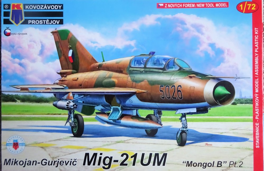 Kovozávody Prostějov griff im fünfzigsten Jahr seines Bestehens (2018) das Thema erneut auf und legte endlich eine MiG-21UM aus neuen Formen vor. Der Bausatz griff dabei auf das o.g. Kombisystem zurück. Der im eigenen Haus kreierte UM-Rumpf wurde durch Teile der R.V.Aircraft MiG-21 ergänzt. Die Qualität ist durchaus gut, wenngleich einige Details des KP-Astes etwas verwaschen daherkommen, während RVA bei seinen Teilen für meinen Geschmack dabei etwas übertreibt. Wie bei KP jetzt üblich erschienen gleich mehrere verschiedene Schachteln.
