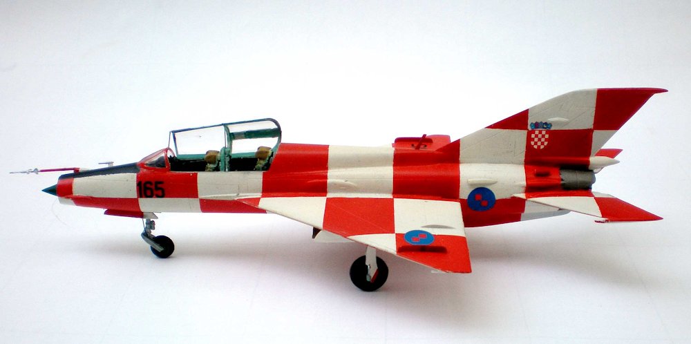 Das bisher einzige Modell einer MiG-21U brachte Bilek 2000 heraus. Hier stimmten die Form, die Gravuren und die Abmessungen. Es sind beide Seitenleitwerke vorhanden. Wie bei allen Kleinserienproduzenten musste man allerdings Abstriche bei den Details der Kleinteile machen. Was aber letztendlich keine Rolle spielt, da es als Alternative nur ein Kitbashing mit einem Eduard overtree gibt.
