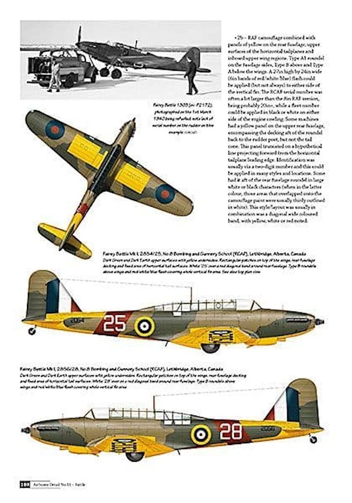 Der Vorbildbereich spannt den Bogen von der Ausschreibung des britischen Luftfahrtministerium bis hin zu den Zieldarstellungsflugzeugen. Das alles wird sehr schön mit  der Hilfe von Fotos, Ausschnitten aus der Bedienungsanleitung illustriert. Natürlich gibt es Informationen samt Bildern über die wenigen Exportexemplare. Die Seriennummern sind hier von den Battle der RAAF, RAF, RCAF und SAAF ebenfalls enthalten.