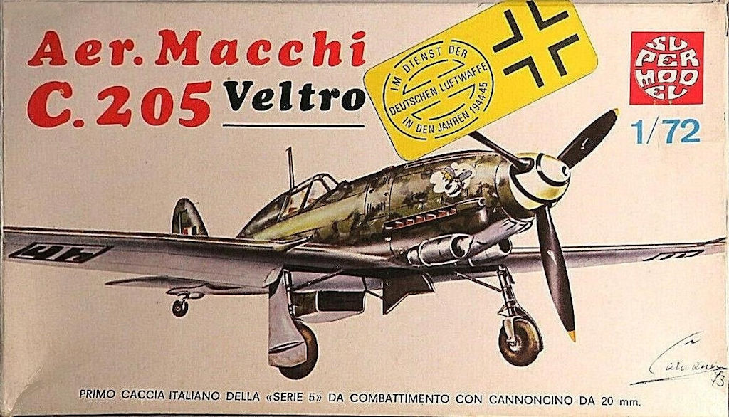 Bausatz: Will man Italeris PR-Abteilung Glauben schenken, starteten die Firmen-Gründer ihr Unternehmen eigentlich nur deswegen, weil sie mit den damaligen Plastikbausätzen gar nicht zufrieden waren. Hauptsächlich deshalb brachten sie also ihren ersten eigenen Bausatz, unter dem Namen „Aliplast“, heraus. Dieser Fiat G 55 Centauro folgten dann bald noch andere italienische WK II-Jagdmaschinen in 1/72. Diese wurden ab 1972 allerdings Bestandteil der neuen Firma „Supermodel“. Tatsächlich war dies jedoch eher eine Art Ableger von mittlerweile Italaerei. Welcher sich aufgrund von Meinungsverschiedenheiten innerhalb der Firmenleitung abspaltete, schlussendlich später aber von dann bereits schon „Italeri“ aufgekauft wurde. Interessanterweise muss der Folgore- und Veltro-Kit jedoch nach der Abtrennung entstanden sein, da beide zuvor niemals bei Italaerei/Italeri erschienen! Und auch nach dem Aufkauf wurden sie nie neu aufgelegt.