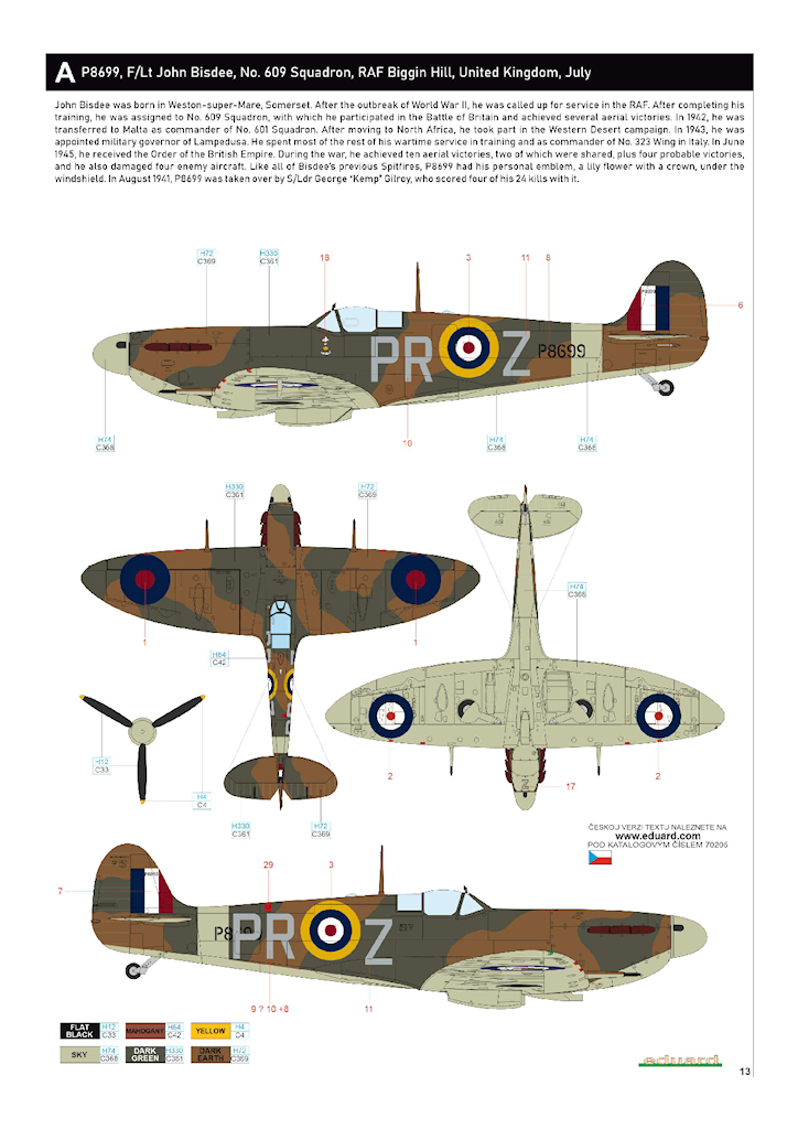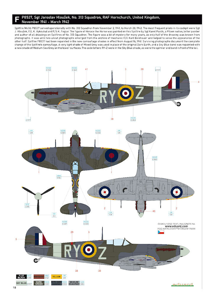 - Mk.Vb, P8537/RY-Z, 313. Squadron der RAF, Sgt. Jaroslav Hlouzek, RAF Hornchurch, Großbritannien, November 1941 bis März 1942.