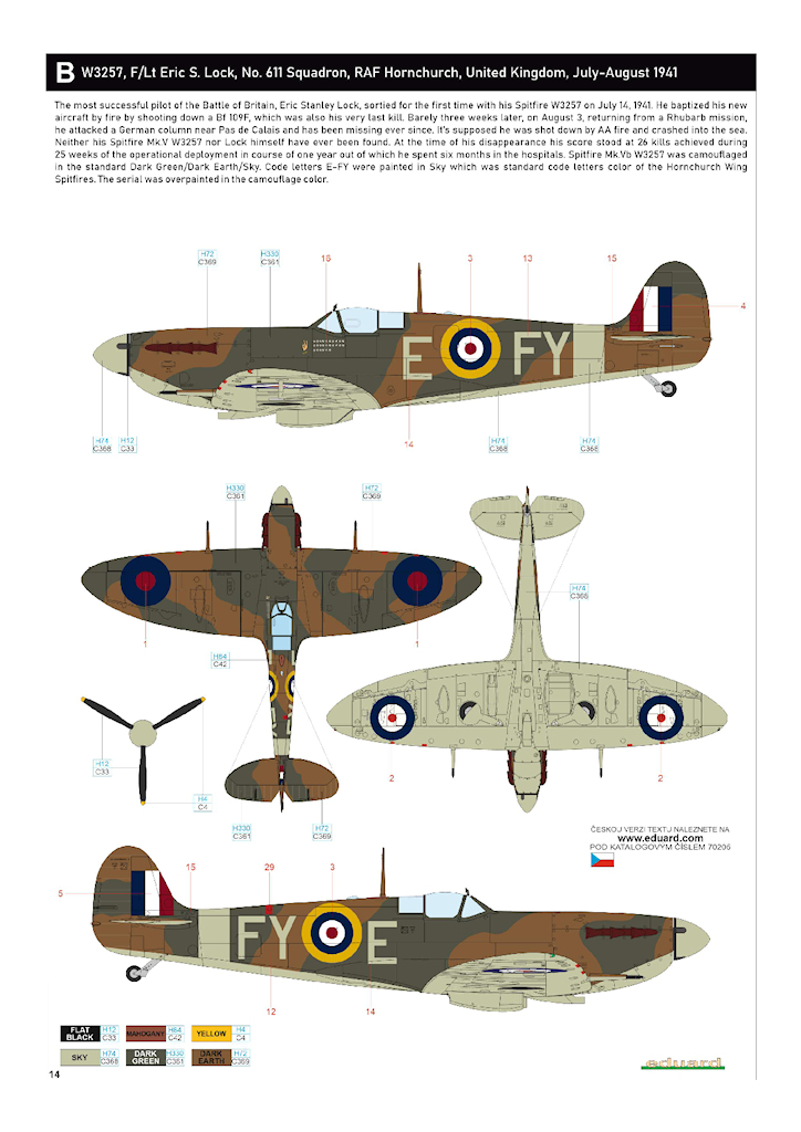 - Mk.Vb, W3257/E-FY, 611. Squadron der RAF, F/Lt. Eric S. Lock, RAF Hornchurch, Großbritannien, Juli/August 1941;