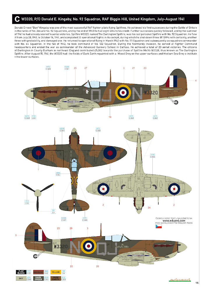 - Mk.Vb, W3320/QJ-N, 92. Squadron der RAF, P/O Donald E. Kingaby, RAF Biggin Hill, Großbritannien, Juli/August 1941;
